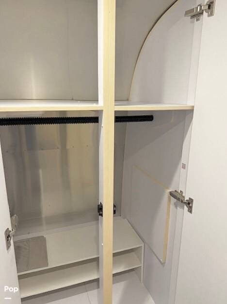 Check out the small bunk above the queen bed! This can be used for storage or for the kids! Additional sleeping is in the rear with the easy-to-fold table/settee.