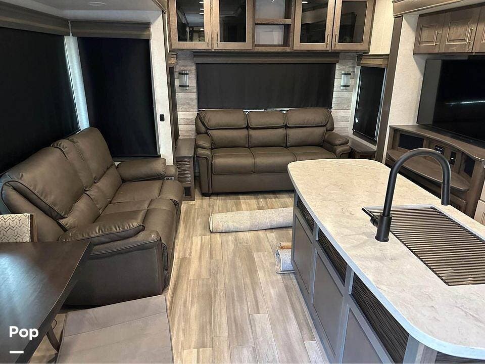 Here, we have a gently used 2022 Paradigm 310RL luxury fifth wheel.