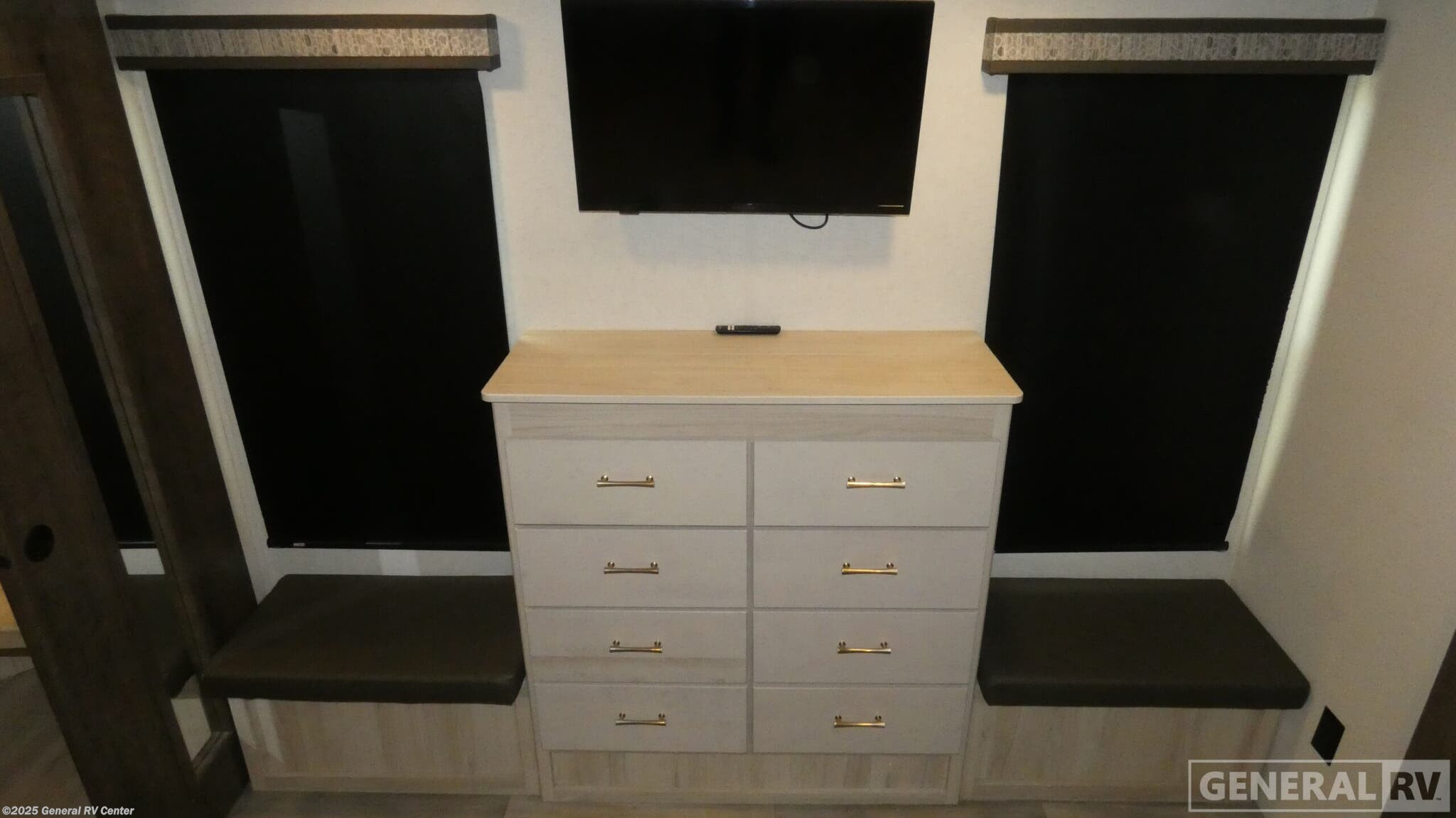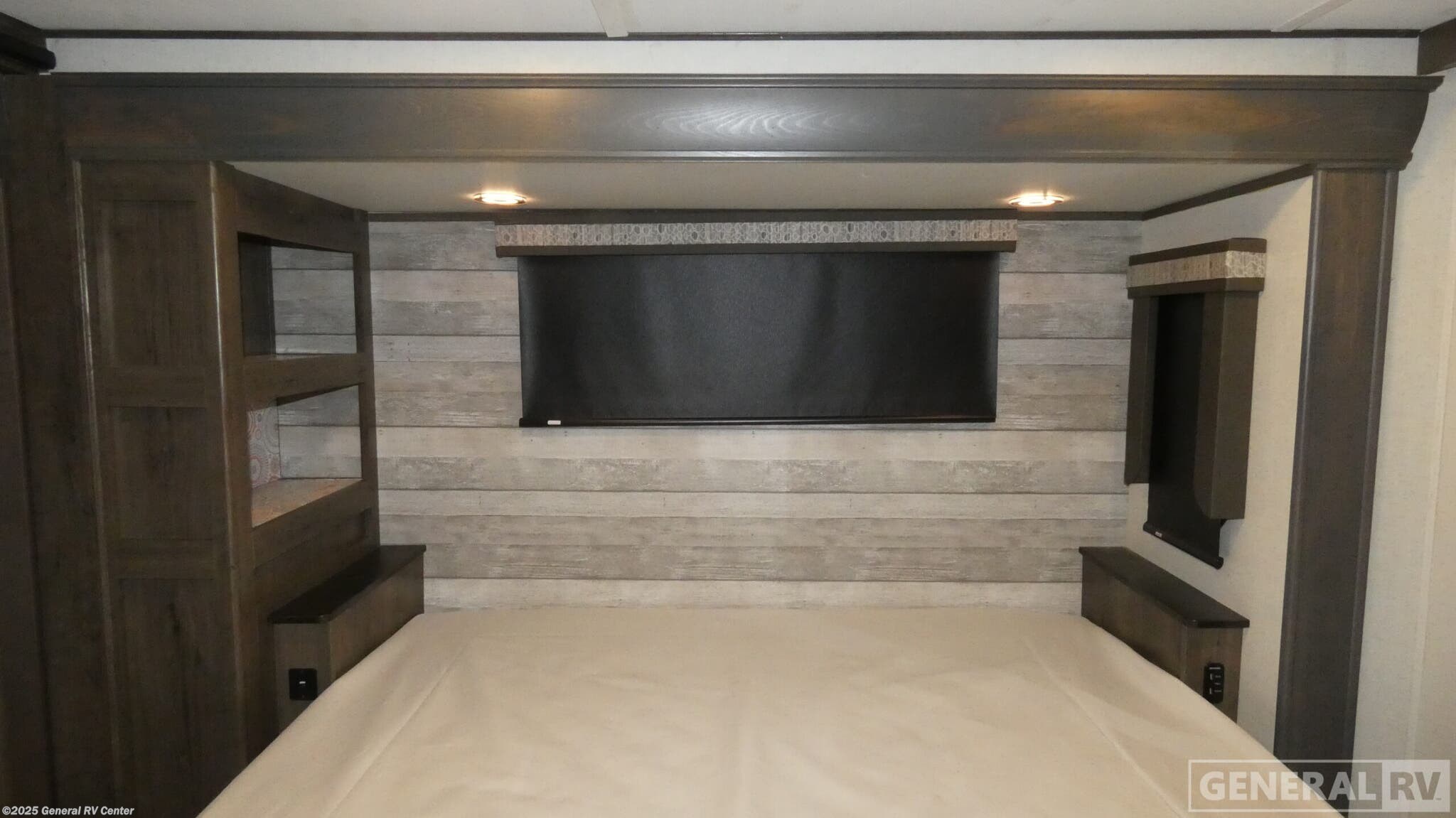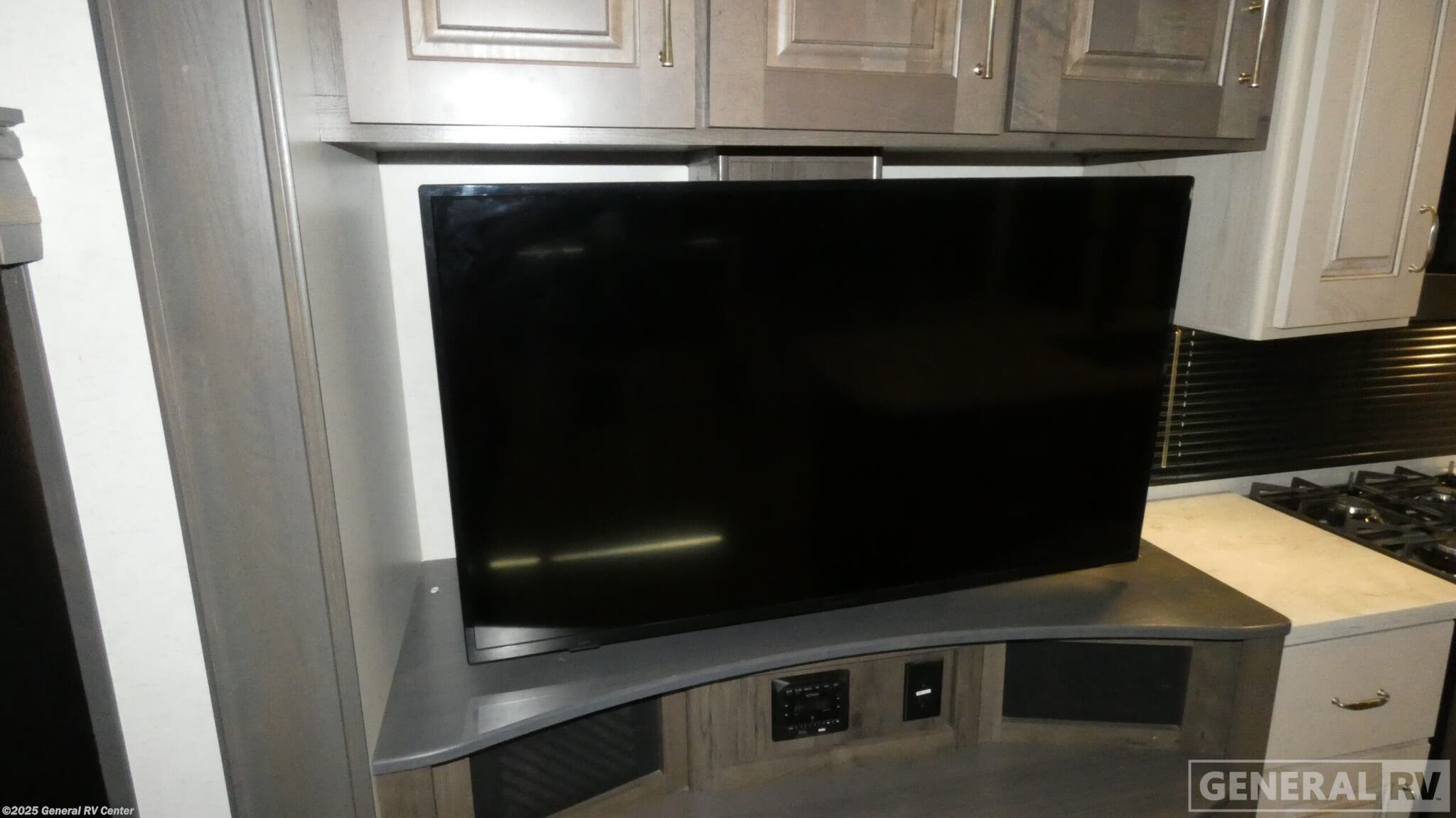 Alliance RV Paradigm fifth wheel 340RL highlights: Entry Closet Pantry/Hutch Flush-Floor Kitchen Slide Floating Dinette Table Two Bedroom Seats 50" Smart TV Travel to see family and friends while living in this RV or while on vacation with beautiful views out of the many atrium windows once at your destination. You will love the spacious rear living area thanks to the dual opposing slides which include the kitchen amenities and the 50" Smart TV with pull-out fireplace including storage below, plus the dual recliner love seat which is super comfortable and the floating dinette table with four chairs. The kitchen island includes a stainless steel farm sink and counter space to utilize many ways, plus you can add a dishwasher option if you like. The full bathroom is up the steps towards the front bedroom and includes a 61" x 30" shower. You even have more floor space in the hallway thanks to the slide out which includes shelf storage, plus more shelves and a king bed in the bedroom. You will find lots of useful storage in the bedroom as well. And don't forget about all the exterior features, take a look! With any Paradigm fifth wheel by Alliance RV, you will experience the next generation advanced frame technology with heavy duty performance running gear. The Benchmark chassis features solid steel 10" l-beam main rails with a 2" torsion tube welded where the running gear attaches, drop frame storage area, flush upper deck design, reinforced goose neck area and a Rota-Flex pin box. The six-point hydraulic auto leveling is faster, stronger and quieter allowing you to enjoy more time away, and the PVC roof is more puncture resistant, ultra bright white and more solar reflective to help keep your fifth wheel cool. The triple 13,500 BTU A/Cs are ultra quiet, independently controlled direct flow A/C units that maximize cooling capacity, plus the 40,000 BTU furnace has flex ducts connected to formed ducts in the floor, and there are dedicated heat vents into the basement and underbelly to keep the tanks and your gear cozy warm during the cooler seasons. Choose luxury, choose convenience, choose to own the best, a Paradigm!