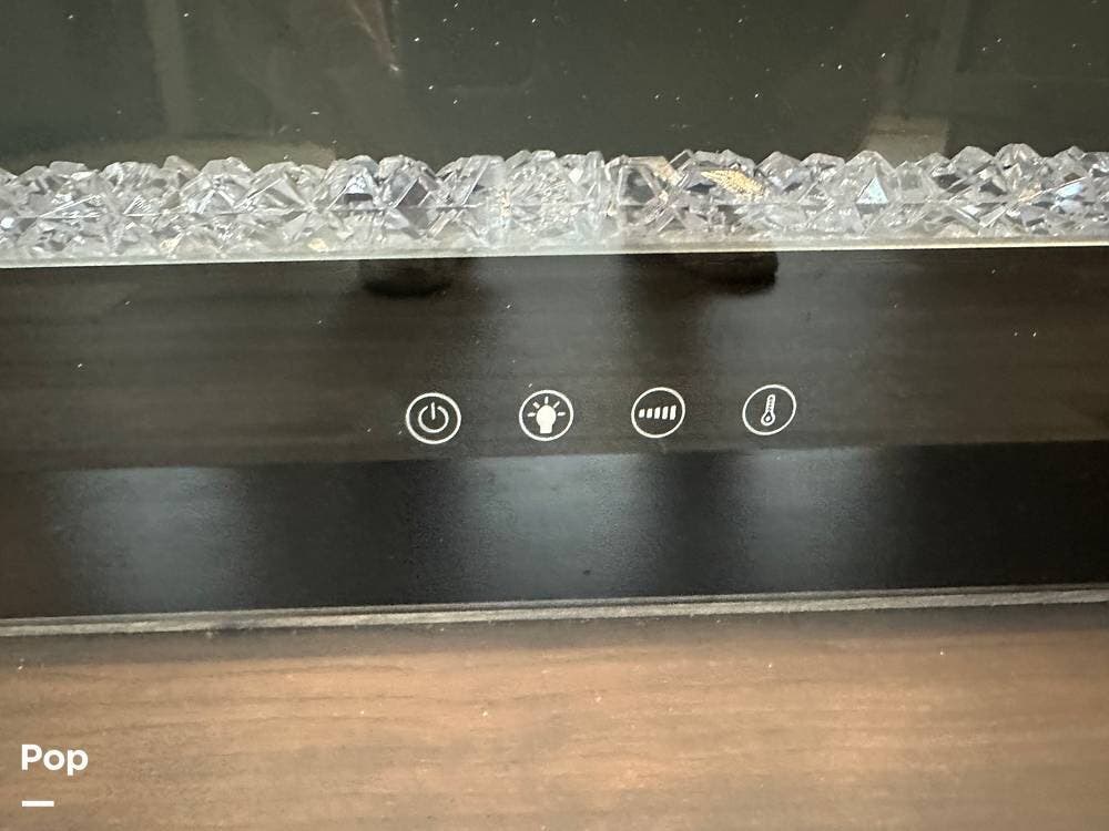 The living area has a couch that converts to a bed, electric recliners, and an entertainment area with a fireplace.