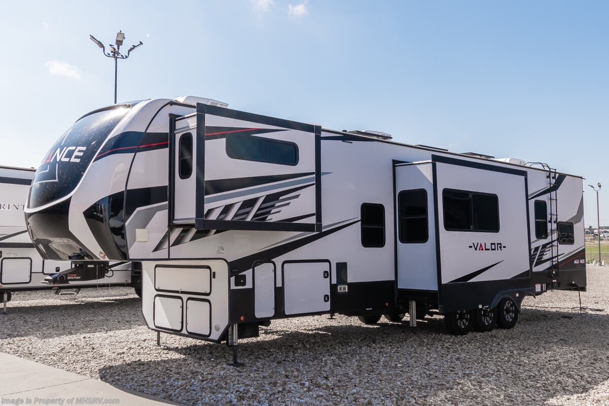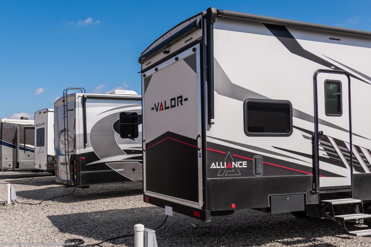 Used Alliance 5th Wheel for sale ā 2022 Alliance Valor 40V13 is approximately 40ā 0ā feet in length, 3 slides and features LCI hydraulic jacks, 3 A/Cās, patio awning, pass through storage, cargo tray, LED running lights, black tank flush, water filtration system, exterior shower, exterior freezer, exterior TV, solar, ladder, inverter, leather seating, fireplace, washer/dryer, hardwood cabinet, convection microwave, residential refrigerator, 3 burner gas range with oven, king bed and much more. For more details on this unit, our full inventory, brochures, window stickers, videos, photos, and customer reviews, visit or call 800-335-6054 for the Texas location or 334-288-0331 for our Alabama location. At Motor Home Specialist, we DO NOT charge any prep or orientation fees like you will find at other dealerships. Read Thousands upon Thousands of 5-Star Reviews at and See What They Had to Say About Their Experience at Motor Home Specialist. WHY PAY MORE? WHY SETTLE FOR LESS?