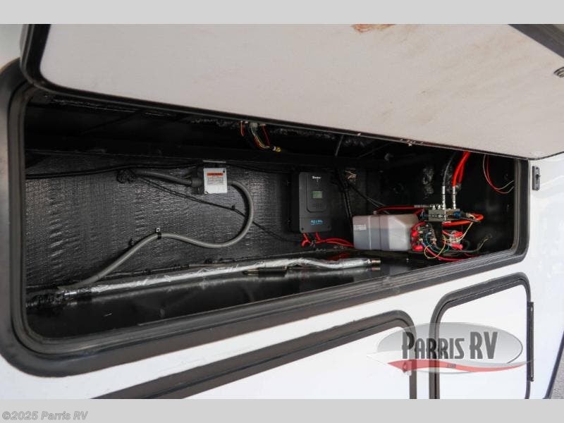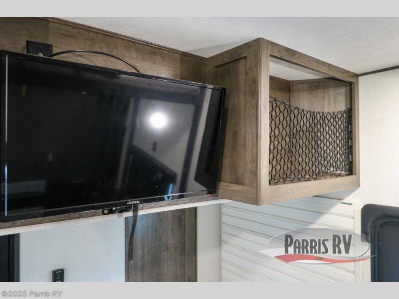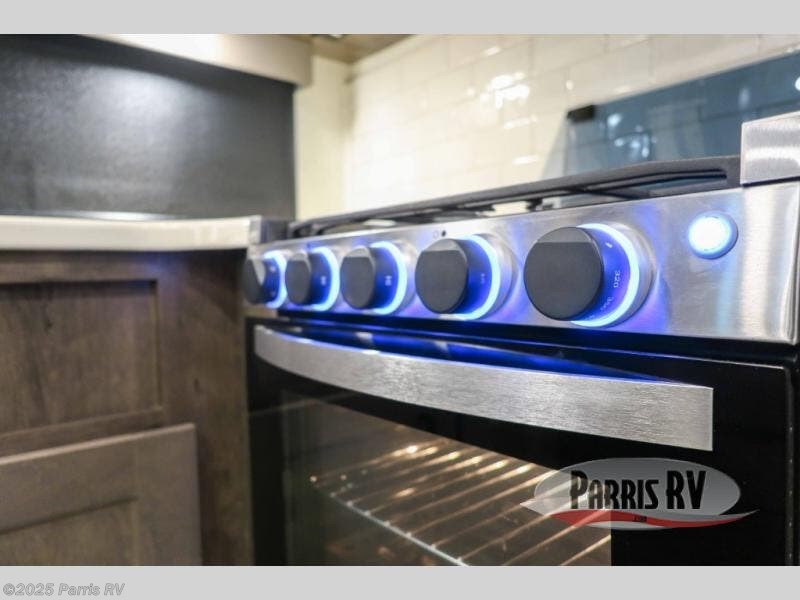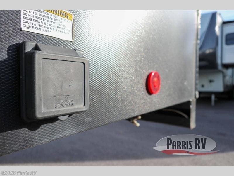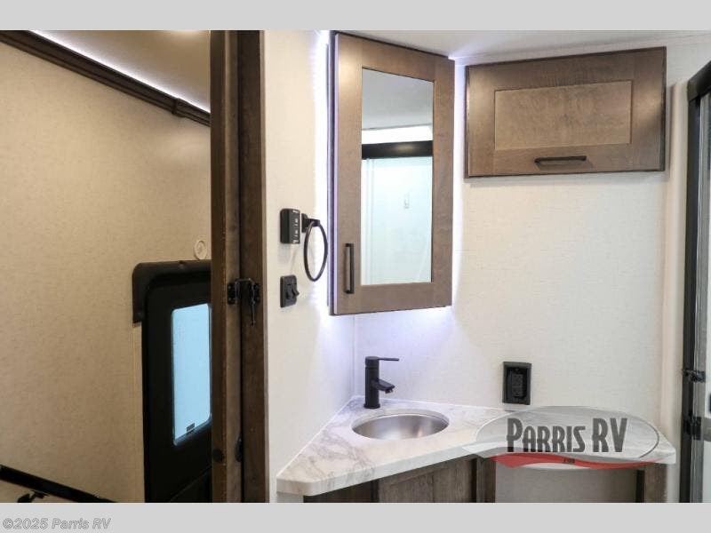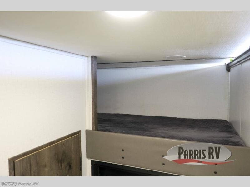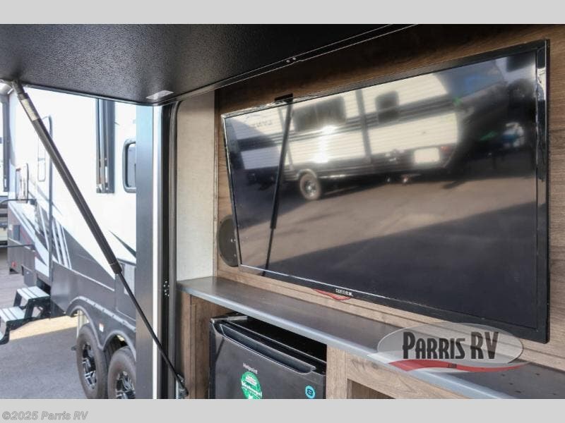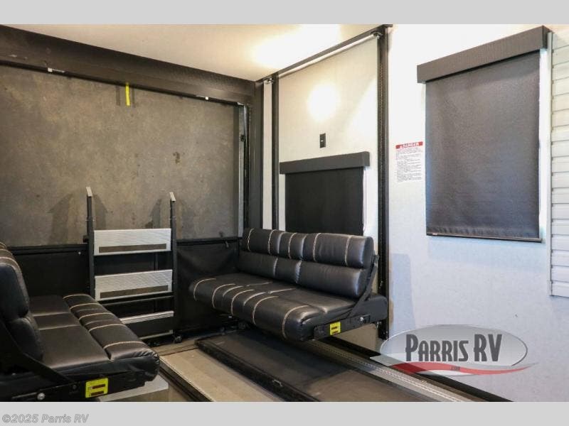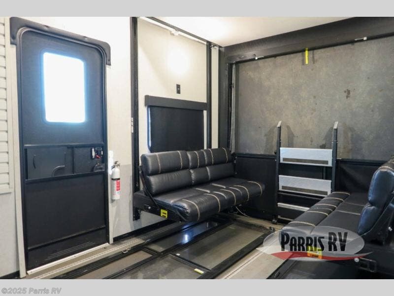 There is room for your off-road toys and the whole family in this toy hauler! The bath and a half makes life more convenient and the dual entry doors create a smooth flow of traffic in and out of the unit. Aside from 13' of garage space, an air compressor, and an entrance/exit door there are also opposing HappiJac sofas with a queen bed above them, a loft that opens to the living room, and a half bathroom. The chef can prepare their best meals with the four burner cooktop while two others sit at the flip up counter with two bar stools. After a fun day on the trails, wash up in the full bathroom with the 48" x 30" shower, grab your pajamas from the front wardrobe or flip top dresser in the front private bedroom then relax on one of the two sofas by the fireplace and Smart TV!