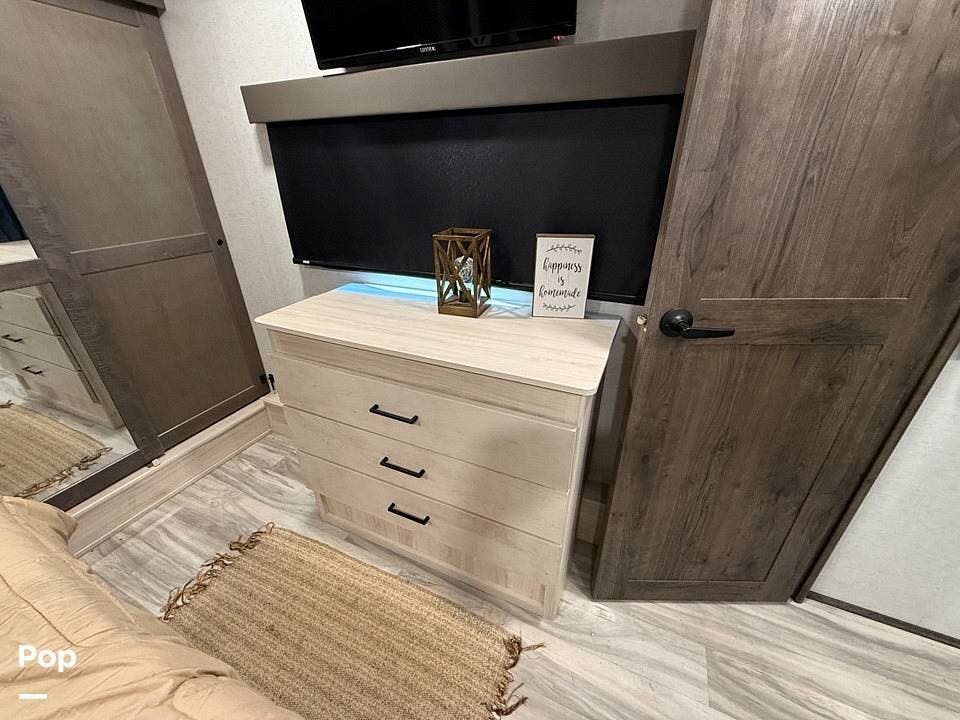Experience luxury, power, and versatility in this beautifully equipped 2022 Valor 41V15 fifth wheel toy hauler. Designed for extended adventures or full-time living, this high-end rig features a spacious and functional layout that includes a rare bath and a half, plus a 15-foot garage with Happi-Jac beds -- perfect for hauling toys or accommodating guests.