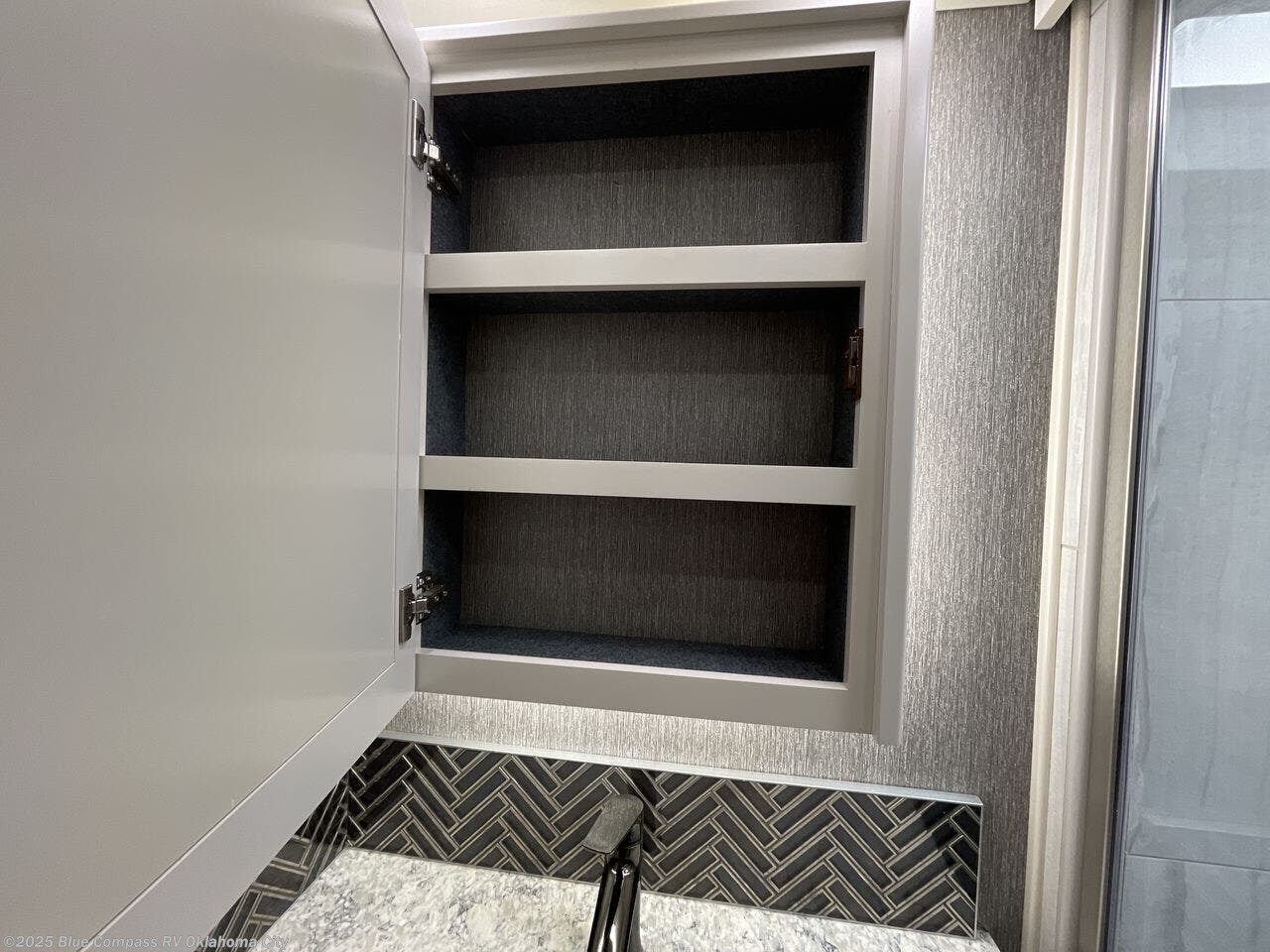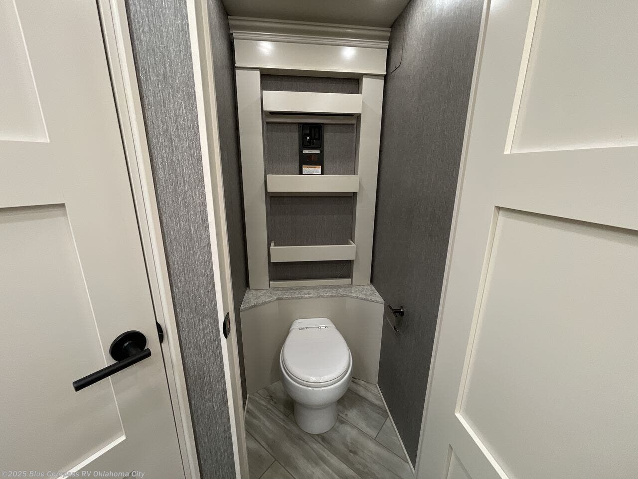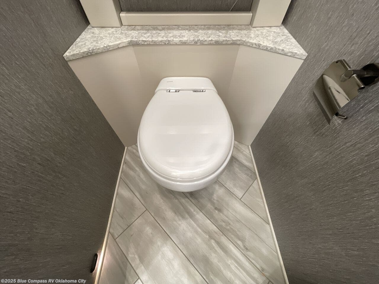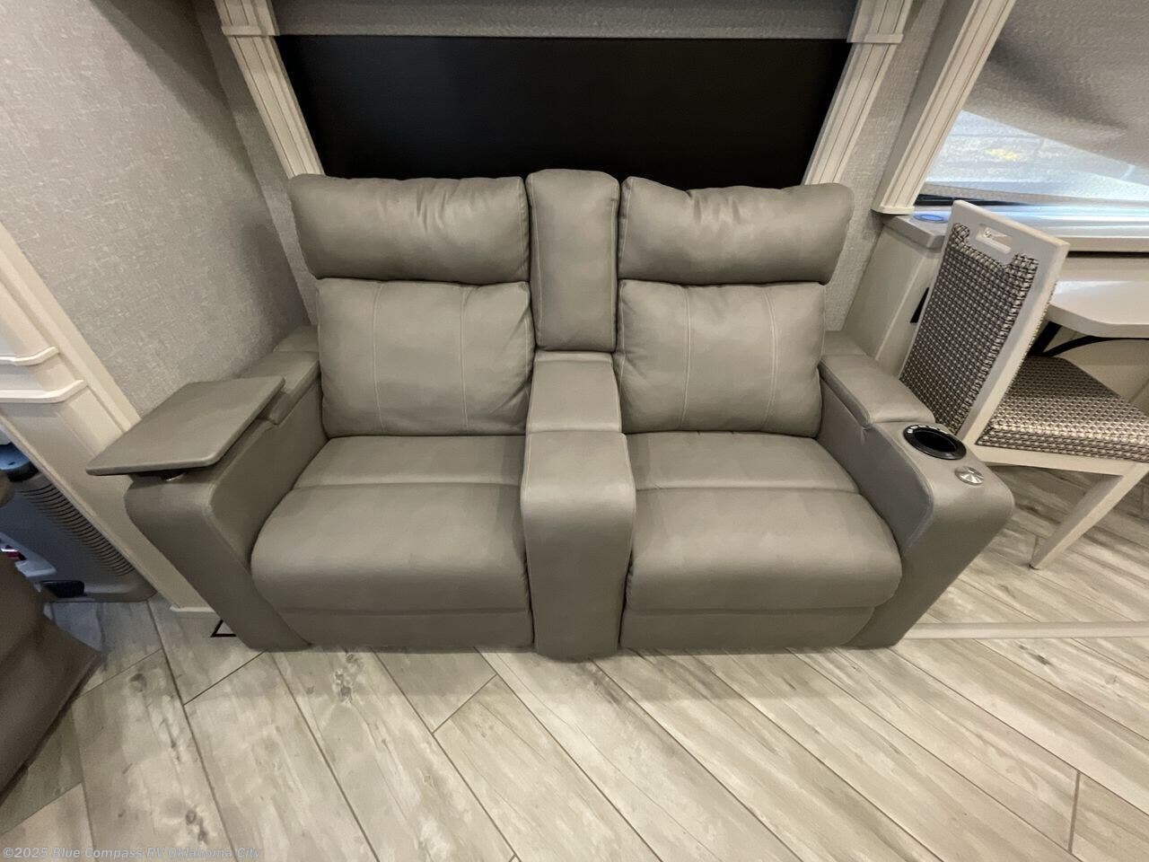 Pack your bags and fuel up this motorhome for a comfortable road trip excursion! You can rest up each night on the Encore Series king memory foam mattress in the rear private bedroom and enjoy clean clothes throughout with the stackable Samsung washer and dryer next to the wardrobe. A guest or two can even tag along and sleep on the 70" sofa with pull-out full bed. A separated bathroom makes it nice and convenient for one person to freshen up in the 39" x 34" shower with a seat while another uses the toilet with a privacy door. Your beverages can be stored in the wine chiller under the kitchen island to free up space in the residential refrigerator which also has an ice maker. Once you have prepared a delicious home cooked meal with the two burner induction cooktop, you can enjoy it at the adaptable dinette!