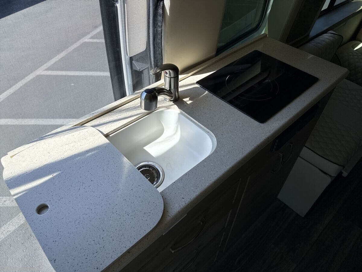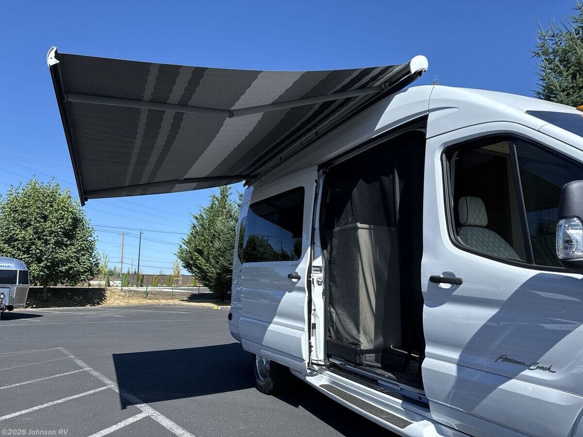 The 2022 American Coach American Patriot MD2 is a luxurious and versatile Class B RV designed for those who crave adventure without sacrificing comfort. This vehicle is built on the robust Ford Transit AWD chassis, ensuring a smooth and reliable drive across various terrains. Its exterior is sleek and modern, featuring aluminum wheels and color-keyed body moldings that add a touch of elegance to its rugged functionality. The tinted side and rear glass not only enhance privacy but also contribute to the vehicle's stylish appearance. One of the standout features of the American Patriot is its commitment to sustainable energy use, with a roof-top solar system that complements the 30-amp shore line power. This RV is equipped with a house battery and a 2000w inverter, providing ample power for all your needs on the road. Additionally, the 2.5 Quiet Tech Generator and 15.1-gallon propane tank ensure that you have a reliable energy source wherever you go. Inside, the American Patriot is designed with comfort and convenience in mind. The composite seamless flooring is both durable and easy to clean, while the side and rear screens allow for fresh air circulation without the intrusion of insects. Privacy shades offer a cozy and intimate atmosphere, perfect for relaxing after a day of exploration. The RV's interior is thoughtfully equipped with: - **Entertainment System**: Enjoy your favorite movies and music with a high-quality entertainment setup. - **Solid Surface Countertops**: Durable and stylish, these countertops provide ample space for meal preparation. - **Stainless Steel Microwave**: Convenient for quick meals and snacks. - **Porcelain Toilet**: Offers a touch of luxury and easy maintenance. - **Macerator Pump**: Ensures efficient waste management. - **Power Bath Vent**: Keeps the bathroom fresh and ventilated. - **Retractable Clothes Line**: Handy for drying clothes on the go. For those who love the great outdoors, the American Patriot includes an outdoor shower, perfect for rinsing off after a day of hiking or beach activities. Heated holding tanks ensure that your water supply remains functional even in colder climates. Storage is plentiful, with under-sofa storage compartments providing space for all your travel essentials. The vehicle's design maximizes every inch of space, making it an ideal choice for both short getaways and extended road trips. In summary, the 2022 American Coach American Patriot MD2 is a well-equipped, stylish, and comfortable RV that offers a perfect blend of luxury and practicality. Whether you're exploring national parks or embarking on a cross-country journey, this vehicle is ready to take you there in style and comfort. ??