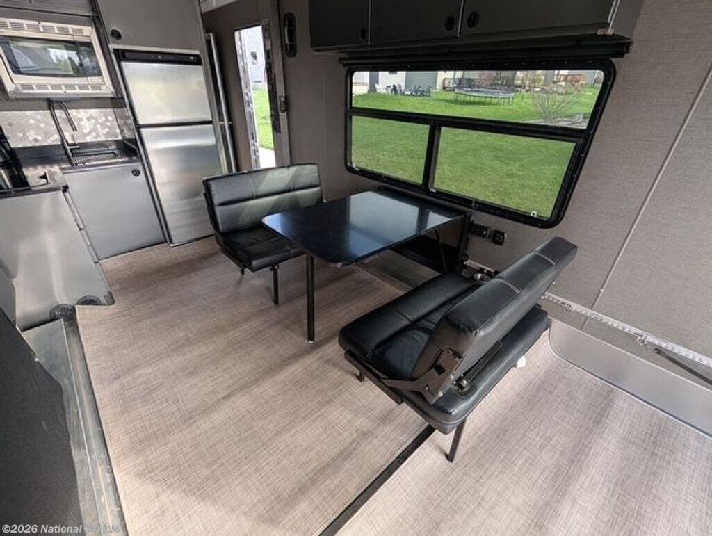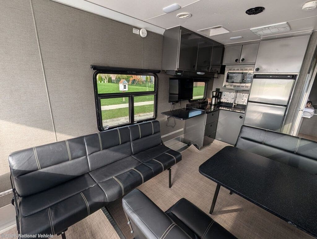 Step inside and you?ll immediately notice the difference. The interior is sleek, modern, and thoughtfully designed, featuring all-aluminum cabinetry, clean finishes, and a bright, open feel. The 12V refrigerator, solid prep space, and smart storage make the kitchen fully functional whether you?re at the track or off-grid.