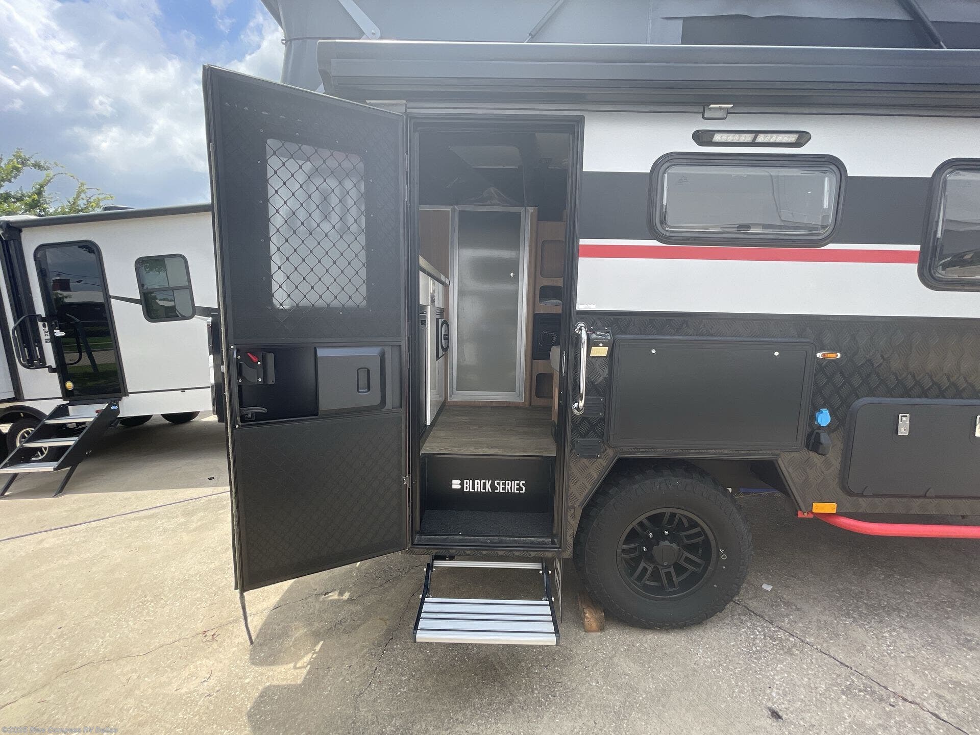 The Black Series Camper HQ Series travel trailers are one-of-a-kind! You won't find many more trailers like these out on the market. Built for the extreme camping enthusiast, the HQ Series is off-road and off-grid friendly. These rugged trailers have aluminum composite panels with added aluminum diamond plating for added strength and a stone guard/skid guard that adds protection for the bottom edge of the trailer. The Eurovision windows have a fly screen and privacy shades, and there is also a tri-lock security door with locking fly screen. An amazing feature that comes on each of the models is the outdoor kitchen which has a stainless steel sink slide, a propane stove, and a large prep table, and the roof-mounted solar panels are amazingly useful for those off-grid trips.