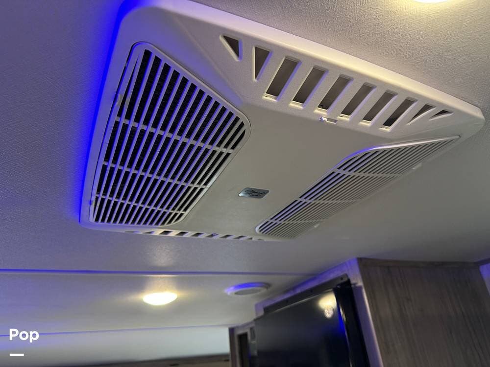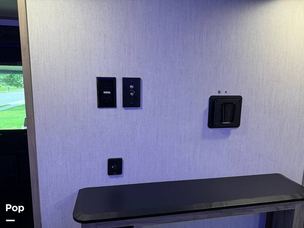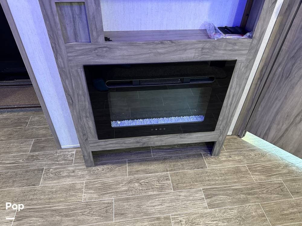 The living space flows seamlessly into a warm and inviting lounge area, featuring a jack-knife sofa, optional plush theater seating, and a cozy electric fireplace with an LED TV prep above it. This is where you'll unwind after a day of exploring--maybe with a movie night or curled up with a book while the gentle hum of the AC keeps you cool.