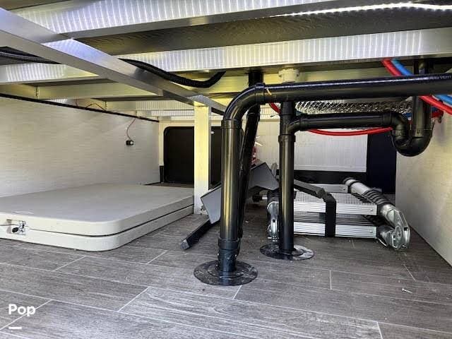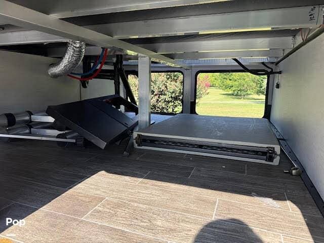 The mid cabin is a roomy bonus room with a drop-down bunk over a sleeper sofa.