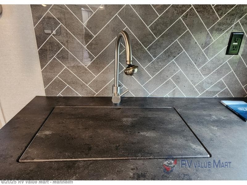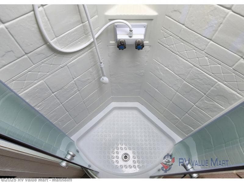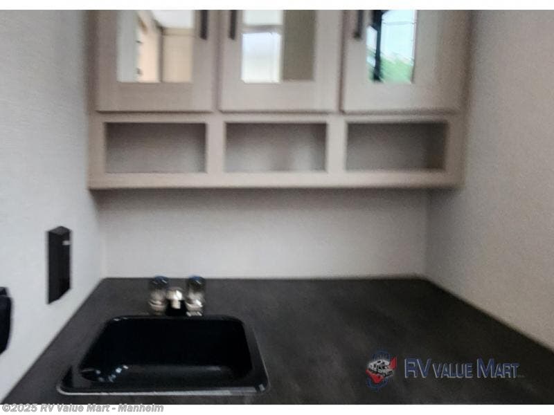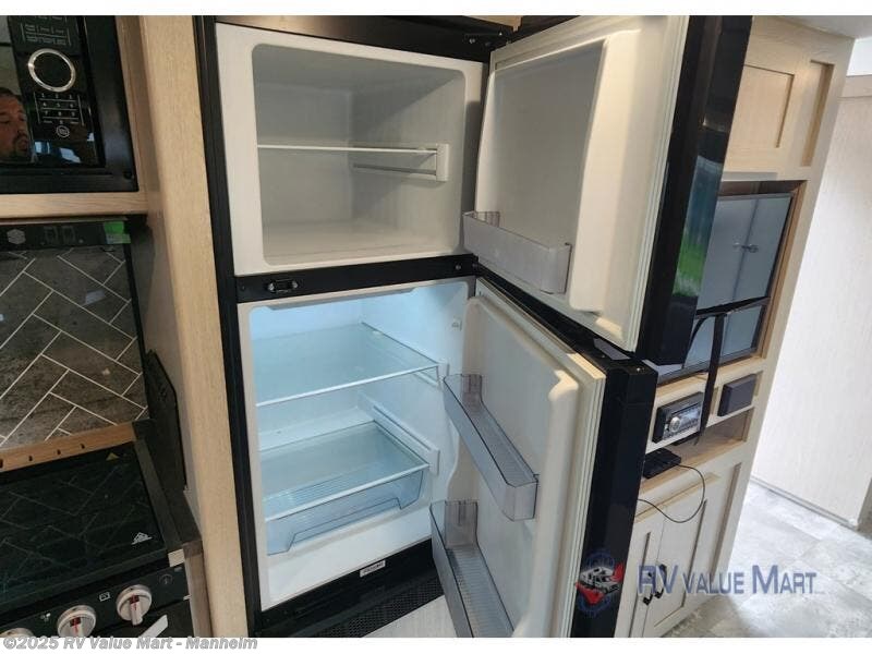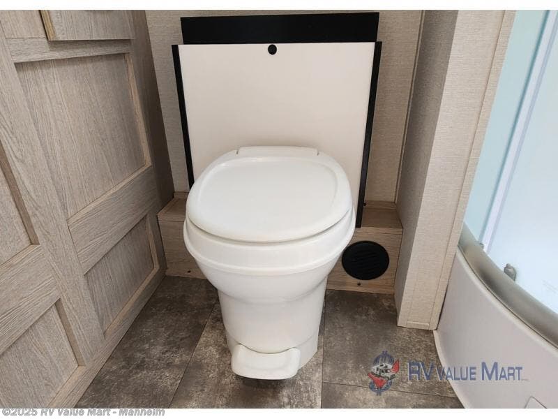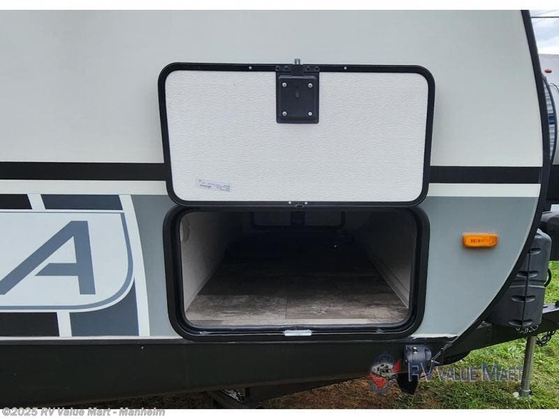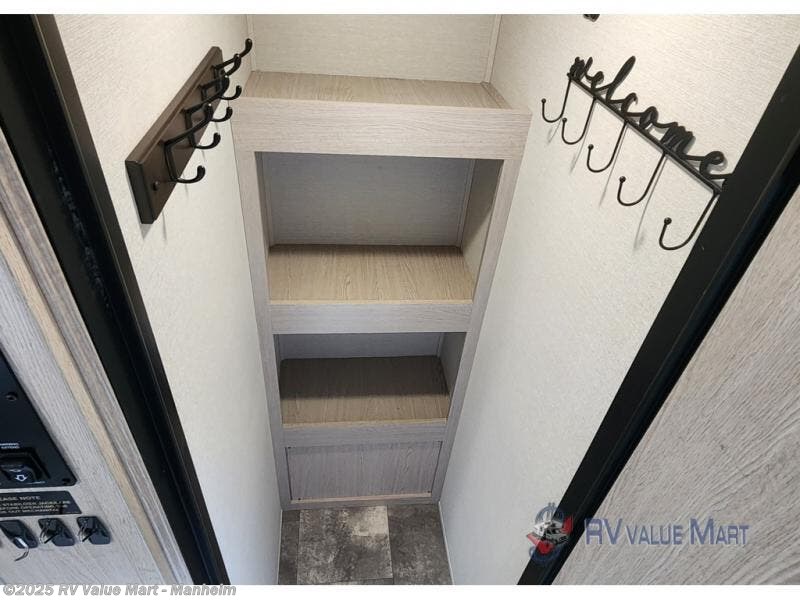 You won't be roughing it on camping trips with this spacious travel trailer. Once you arrive at the lake, make a quick lunch on the exterior camp kitchen, set up the 18' power awning, then grab the fishing poles from the pass-through storage! When you get back from fishing you can clean up in the full rear bath, then relax on the sofa or play a game around the U-shaped dinette. You will love the amount of storage space you have in this trailer with plenty of overhead cabinets, dual bedroom wardrobes, plus an entryway walk-in closet with shelves for jackets, food, and shoes!