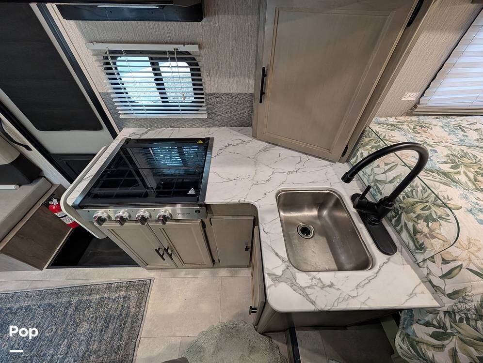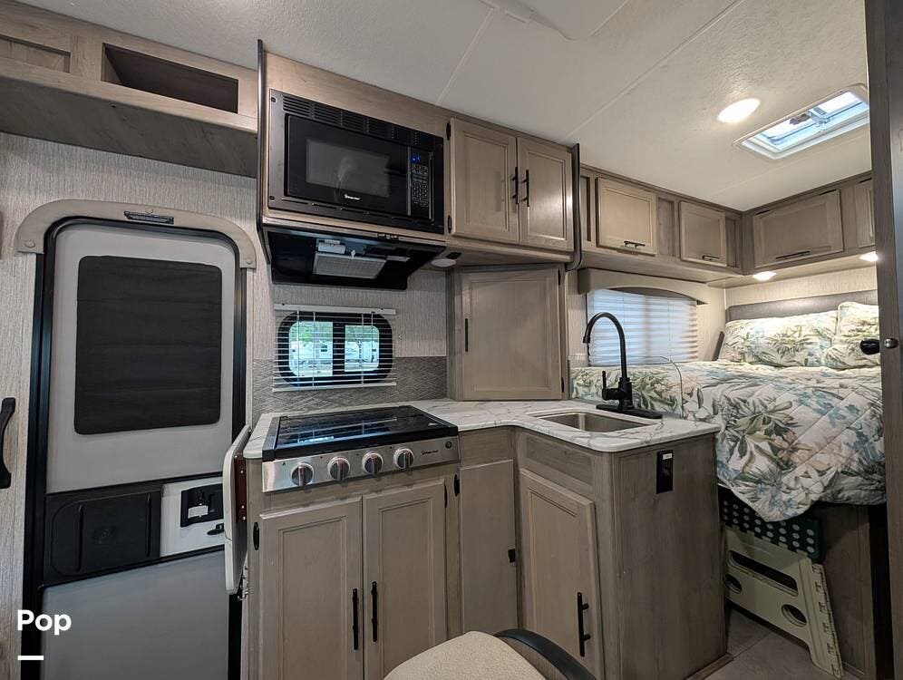 Inside, this 20CB offers a comfortable and surprisingly spacious layout, with large windows that bring in plenty of natural light and airflow. It sleeps up to 5, including a cabover bunk, and features a J-shaped dinette that's perfect for dining, relaxing, or converting into additional sleeping space.