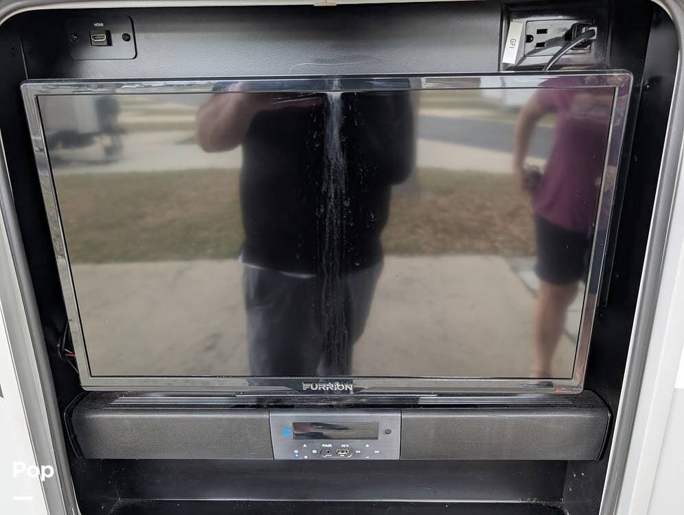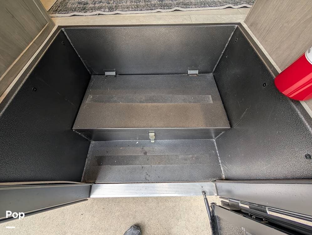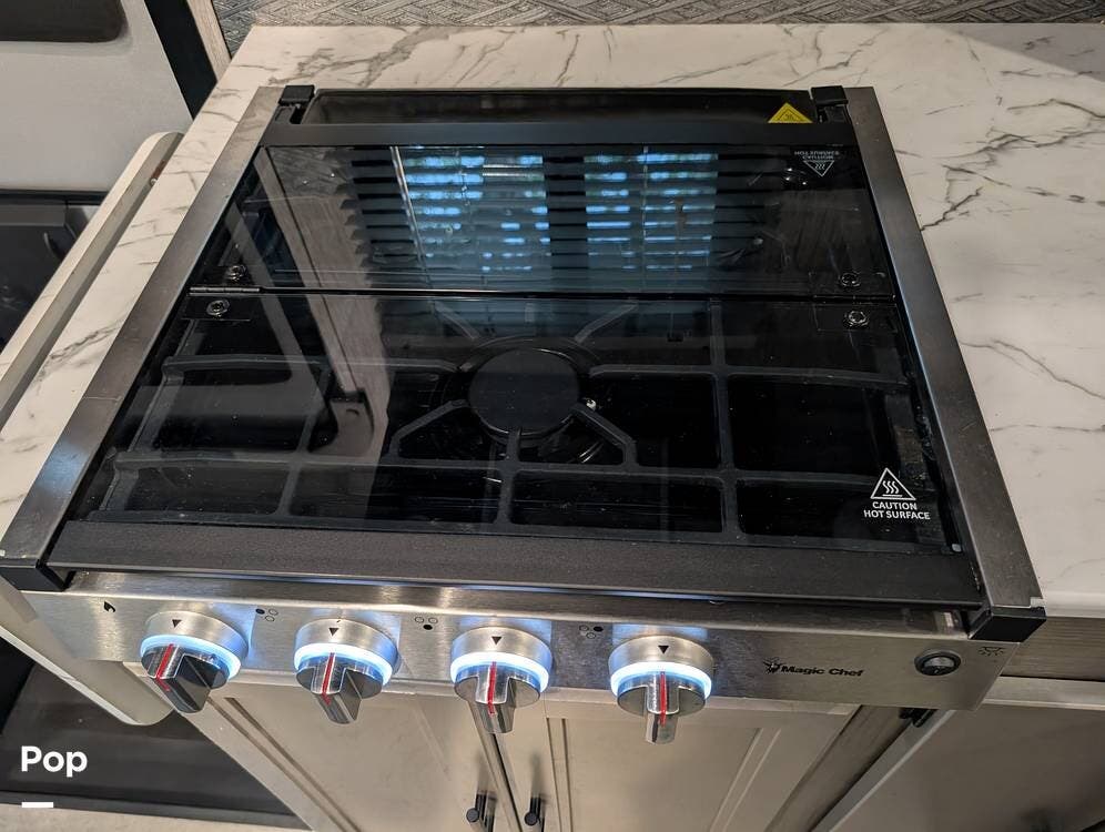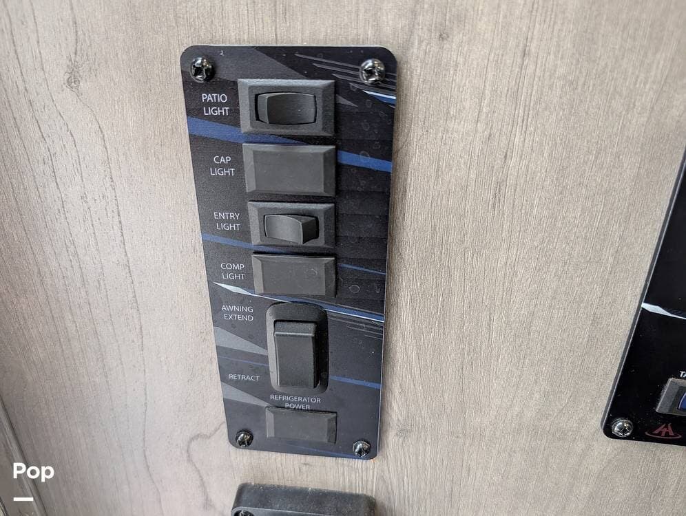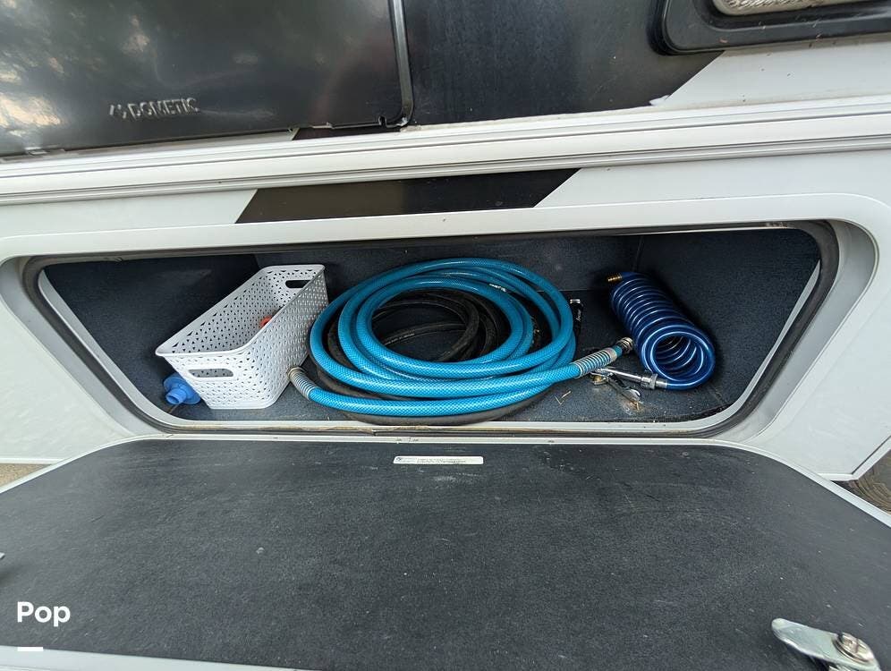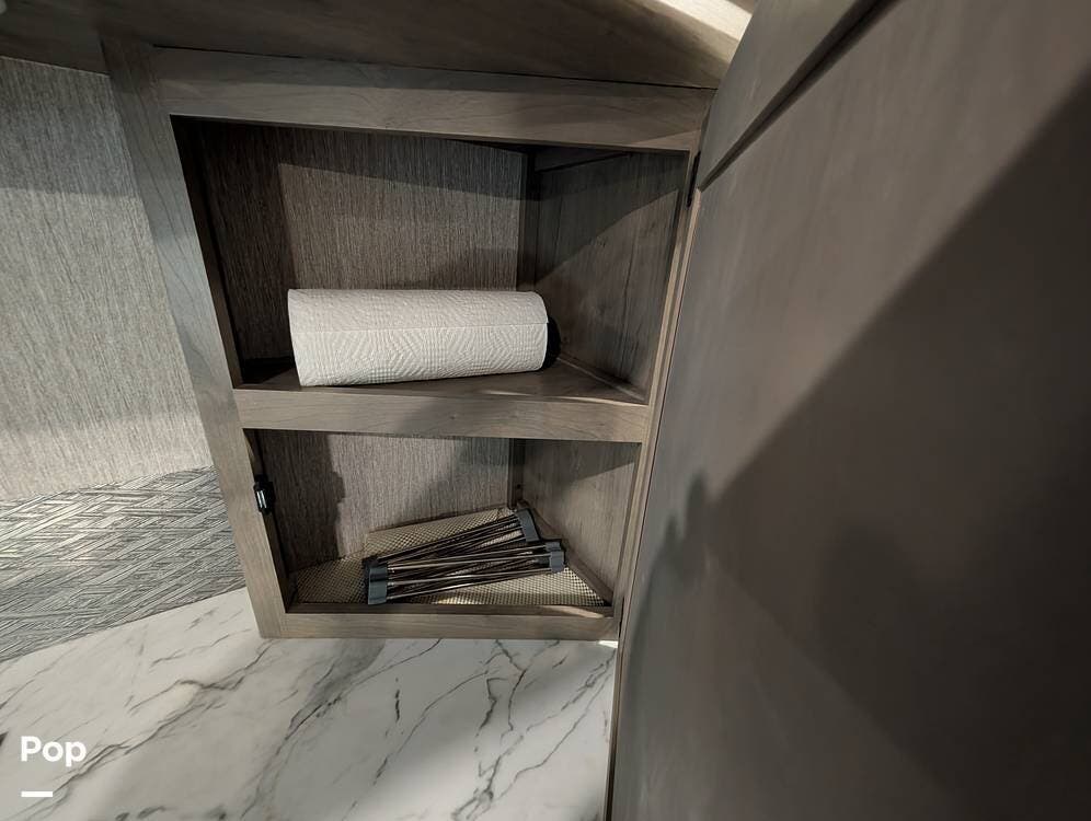 On the exterior, you'll find a power awning, an exterior TV for outdoor entertainment, and ample storage for all your travel gear.