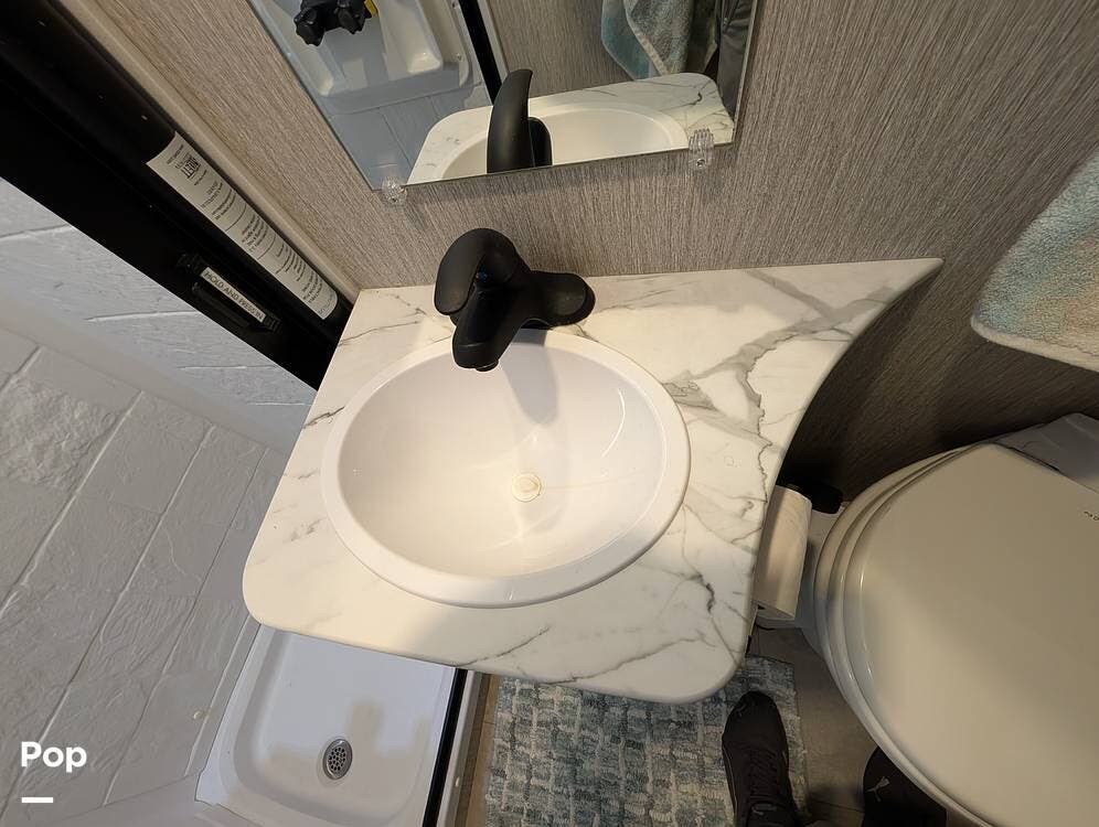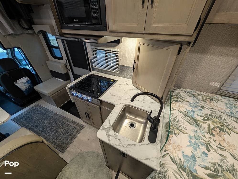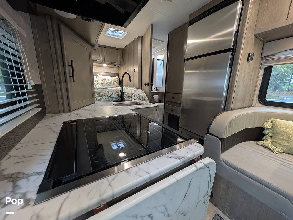 Built on a Ford Transit chassis with the 3.5L EcoBoost, this coach delivers a smooth, confident ride and truly drives more like an SUV than a traditional motorhome. At just 20 feet, it's easy to maneuver and park, while still offering a 5,000 lb towing capacity for added versatility. It also features aluminum wheels for a clean, modern look.