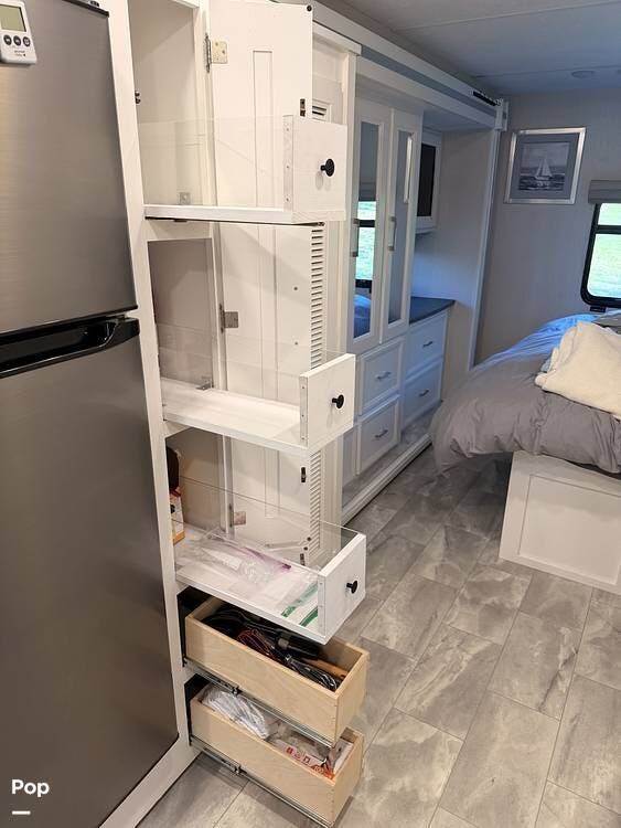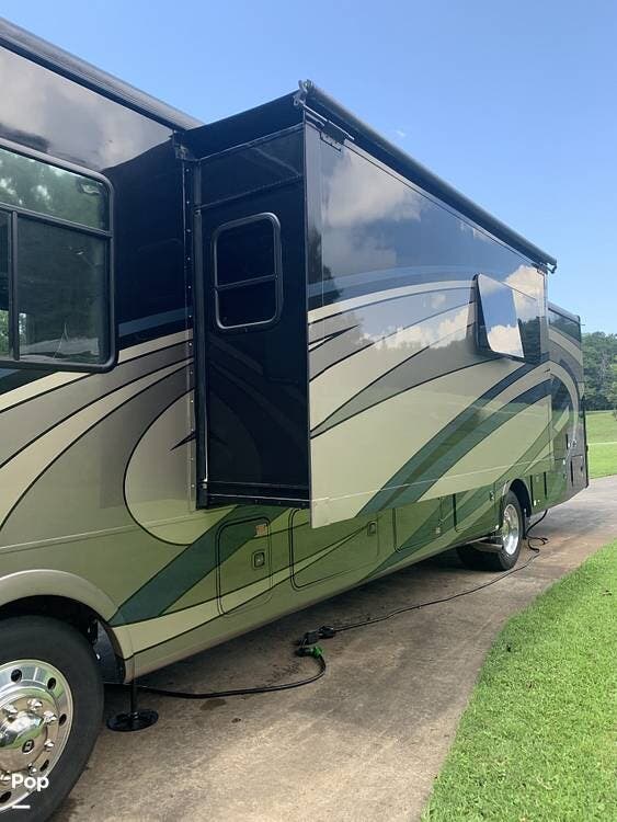 This Beautiful Class A RV is equipped with a 7.3L V8 engine that generates 350-hp, providing plenty of power for all your adventures, and features a Ford F53 chassis for smooth handling and a very stable ride. She also has rear and side-view cameras for a safer trip.