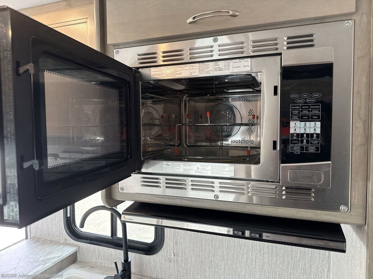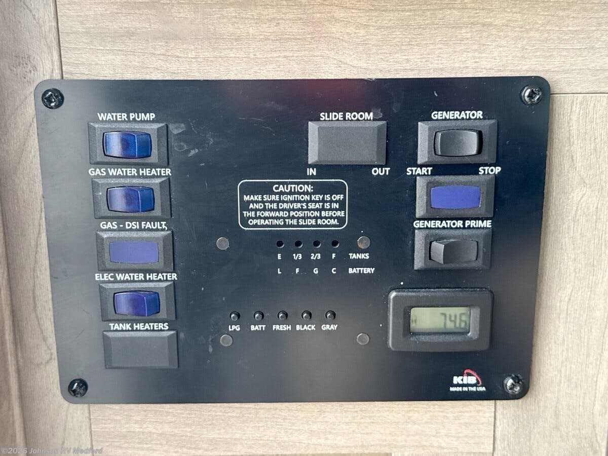 Features Include: 7.3L V8 Gas Engine, Traction Control, Hill Start Assist, 30BH), Dash AC, AM FM Bluetooth, Pleated Night Shades, Window Valances, Jackknife Sofa (vbm), Dinette (vbm), Galley Backsplash, Stainless Steel Sink, High Rise Faucet, Cooktop Cover, Systems Center, USB Charge Ports, Queen Bed, King Bed (29KB), Bedroom TV Prep, 110v, Vanity Mirror, Shower Skylight, Foot Flush Toilet, Solar Panel Ports, Gas Generator, 13k AC, LP Furnace, Pex Plumbing Lines, 6-Gal Hot Water, Winterizing Kit, Aluminum Framed Cage, Crowned Roof, Steel Rear Bumper