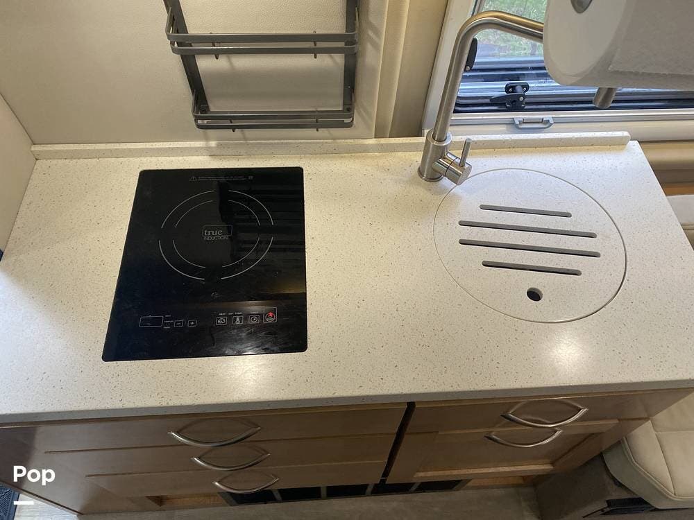 Inside, comfort and functionality shine with upgraded driver and passenger seat upholstery, a modern induction cooktop for efficient meal prep, and the versatile rear powered sofa bed in the 20C floorplan. The open living space, combined with premium materials and Coachmen's solid hardwood cabinetry, creates a refined yet practical environment whether you're traveling for a weekend or living on the road full-time.