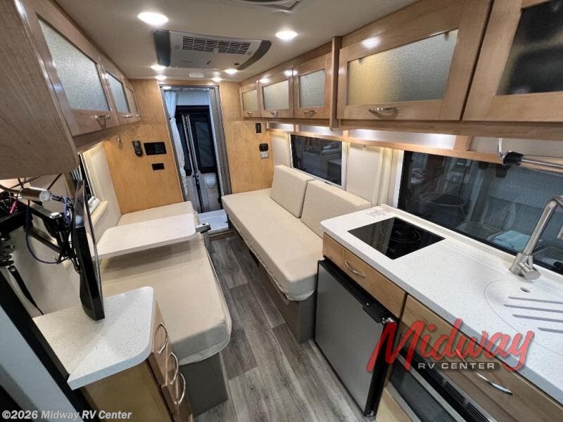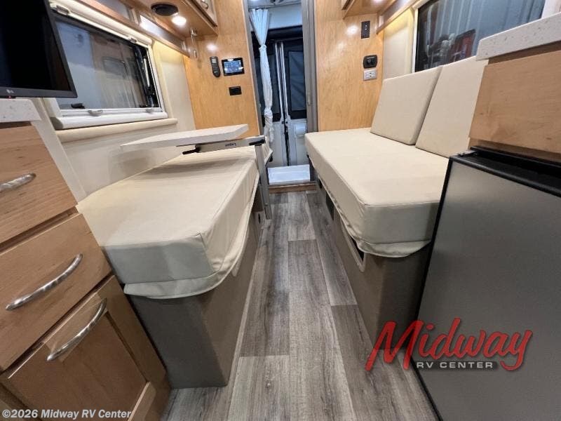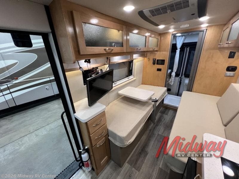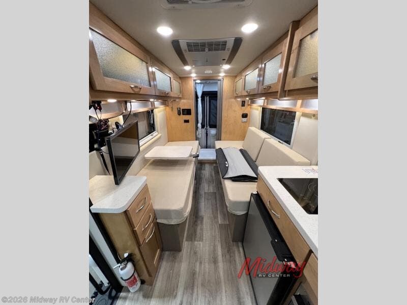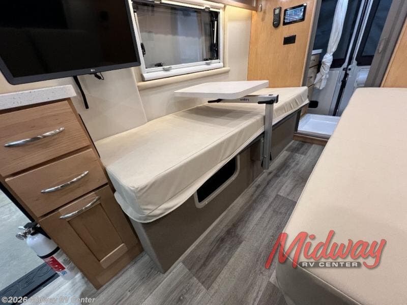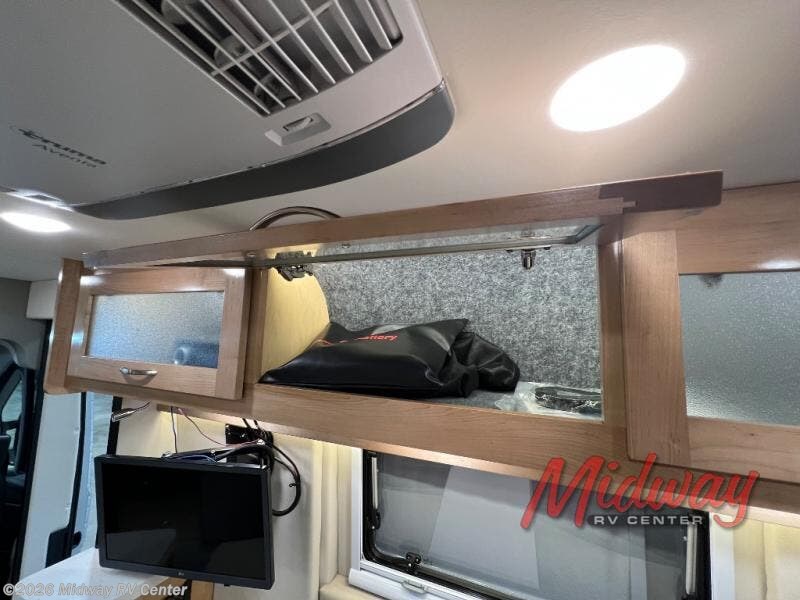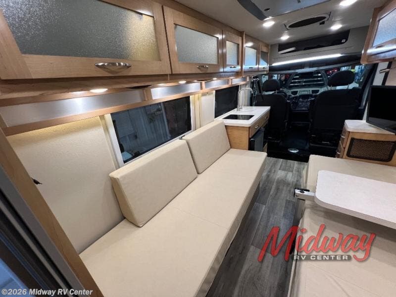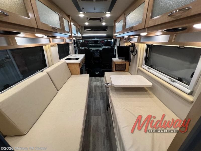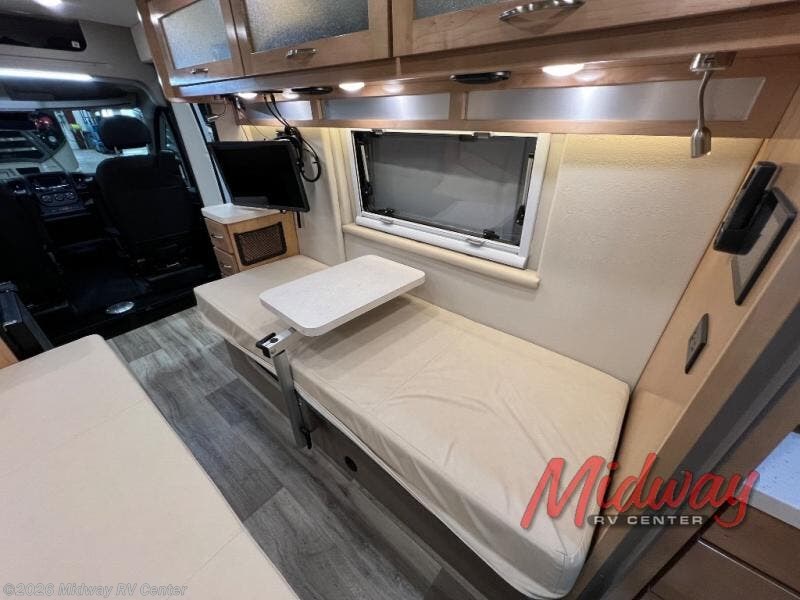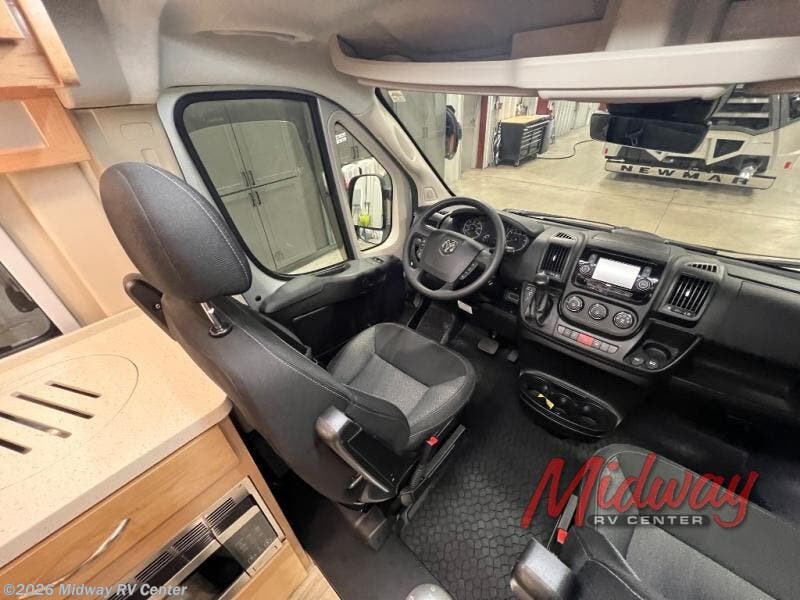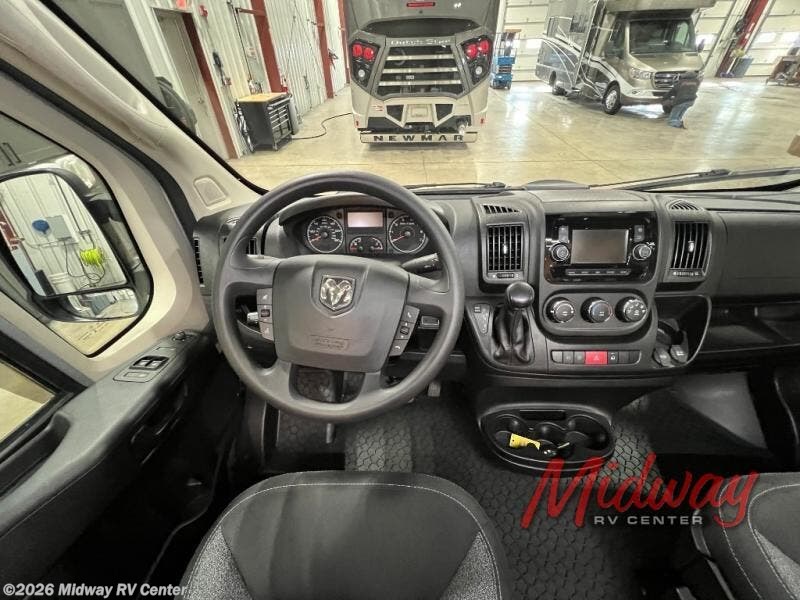 Each Nova Class B gas motorhome by Coachmen features Sumo Spring front and rear suspension and a 6-speed automatic transmission with front wheel drive for smooth journeys. A Ram ProMaster 3500 chassis comes standard, along with a 3.6L V6, 24 valve engine with 280 HP. You will appreciate the innovative Firefly multiplex system, the Tru-Tank tank sensors, and the 3 Group 31, 115AH AGM batteries for added power, and a new 24" LED Smart TV will keep you entertained on long trips. Inside, you'll find solid hardwood cabinetry, a fiberglass shower verses the competitors ABS shower, a remote control Fantastic fan with a rain sensor, and many more comforts to make you feel right at home. There is also a new Truma Aventa 13,500 BTU A/C with three speeds, a dehumidifier, and night mode to ensure your comfort throughout each trip!