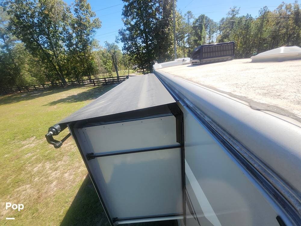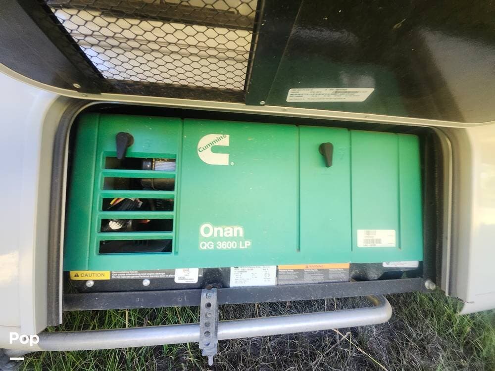 Outside, the camping area under the large awning features an exterior TV and ample storage. There is an Onan generator too!