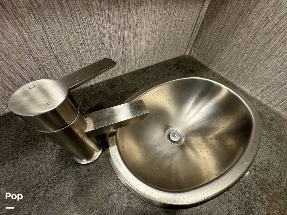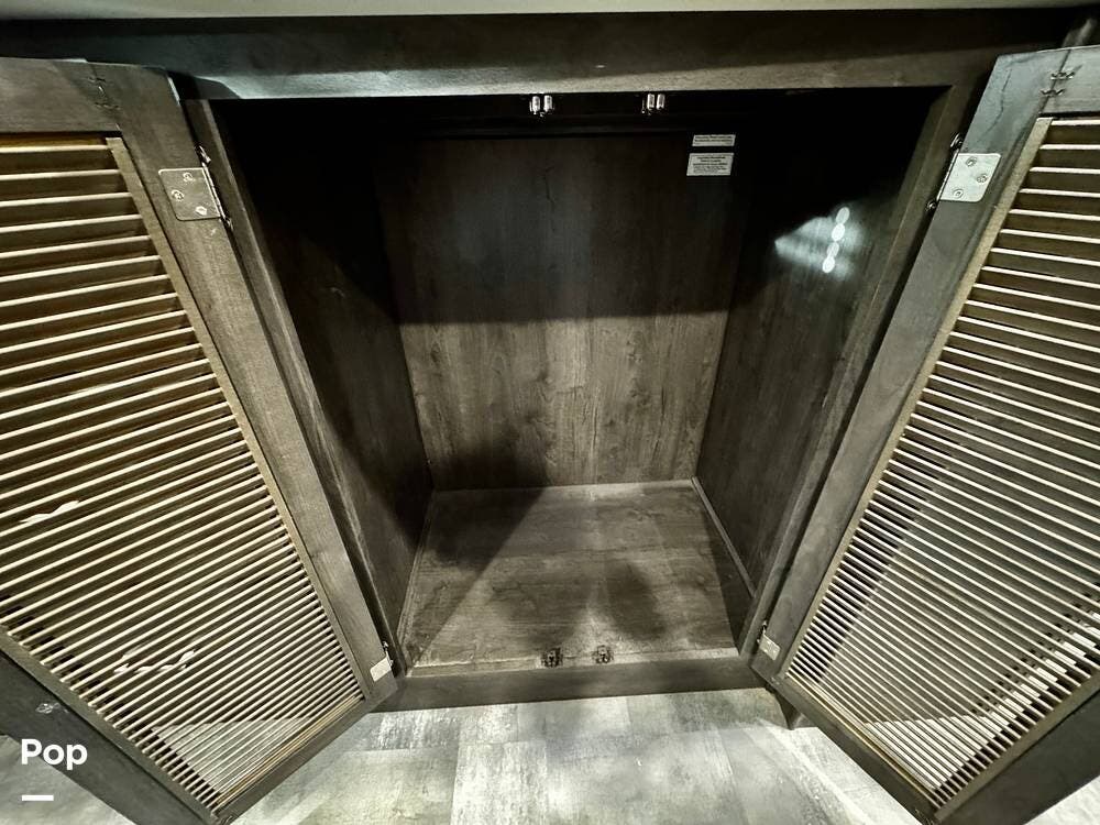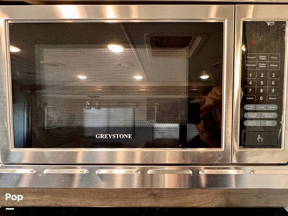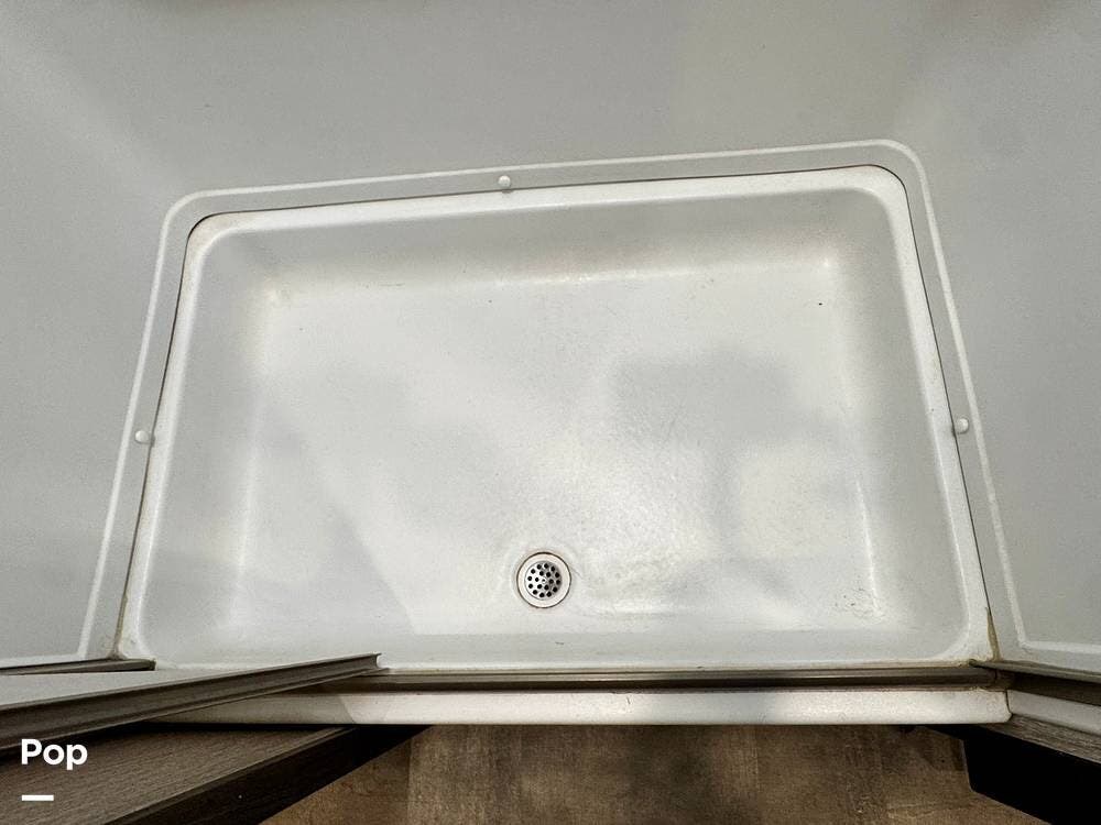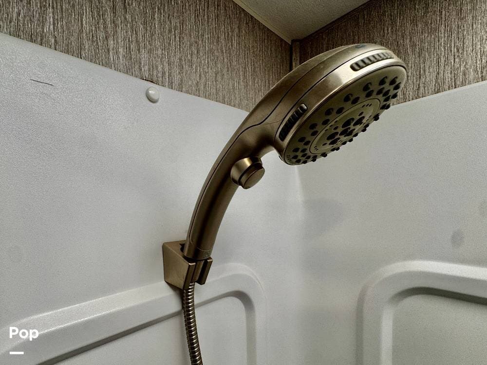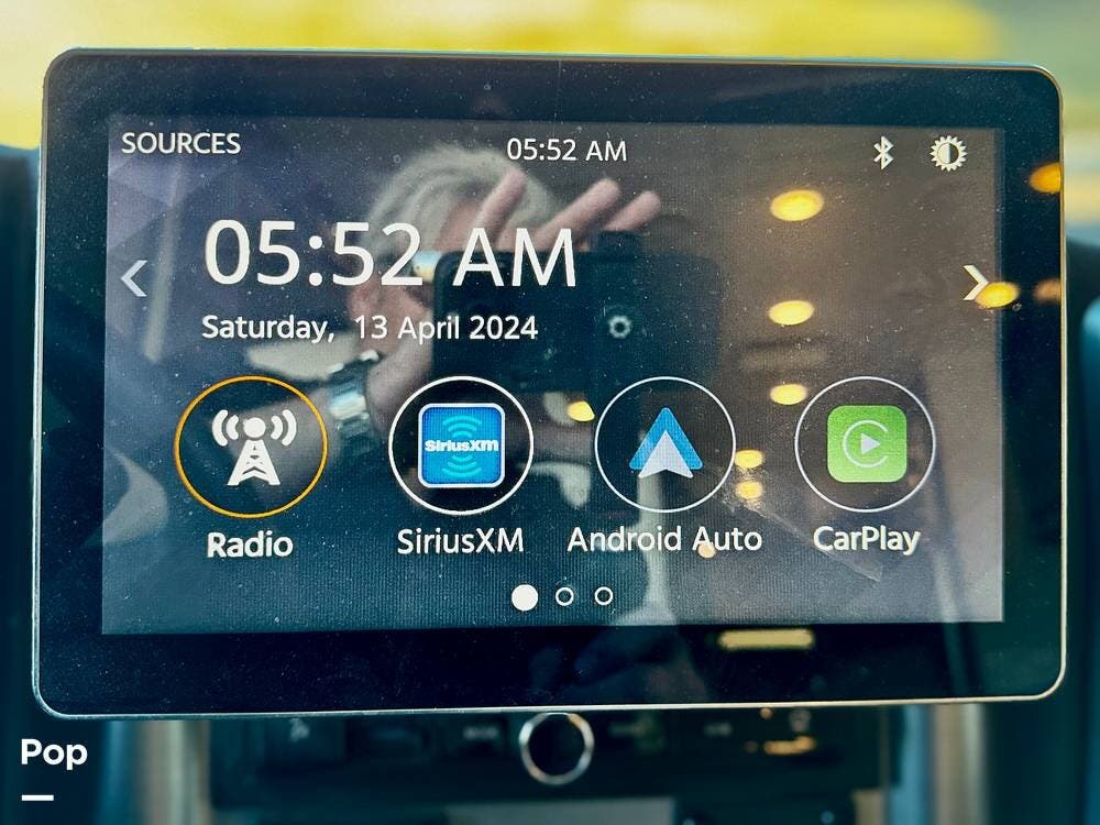 Outside, under the armless electric patio awning, is a flat-screen TV to watch the big game. The seller is throwing in a Blue Ox Alpha II tow hitch! All you need is the specific hitch pins for your tow vehicle. The seller is also sweetening the deal with a Blue Ox Patriot II brake controller (it needs a new charger cord).