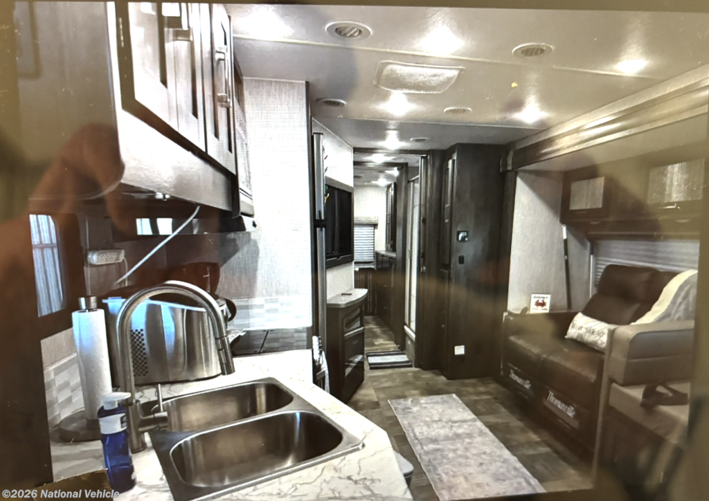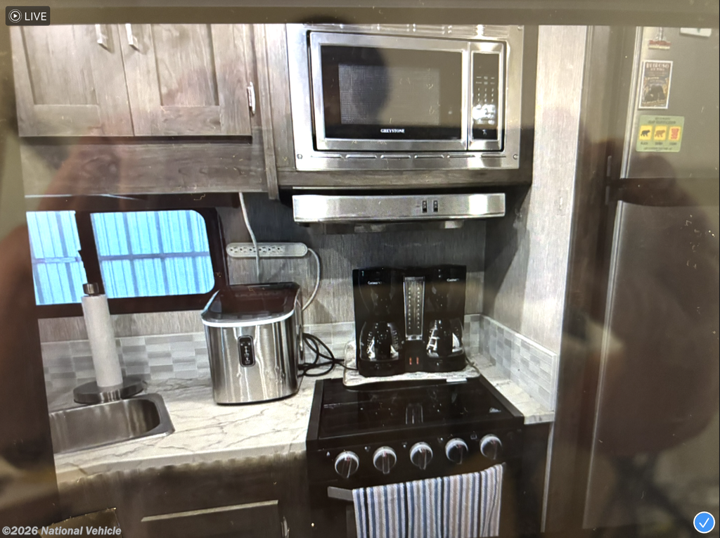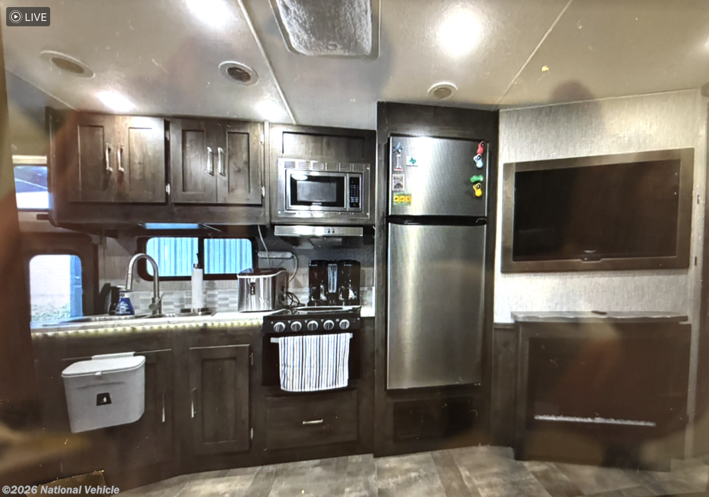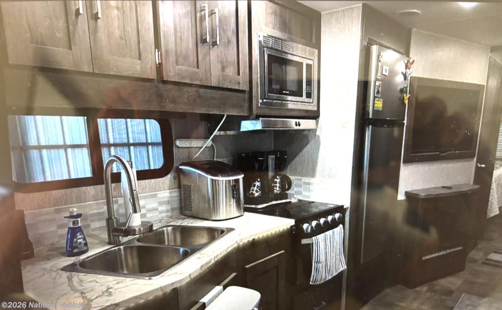 Step inside to discover a bright and open interior highlighted by dual slide-outs that expand your living space. The theater seating and booth dinette provide comfortable seating for dining or lounging, while the fully equipped kitchen features a refrigerator, three-burner range, microwave, double sink, and abundant storage?perfect for cooking on the go.