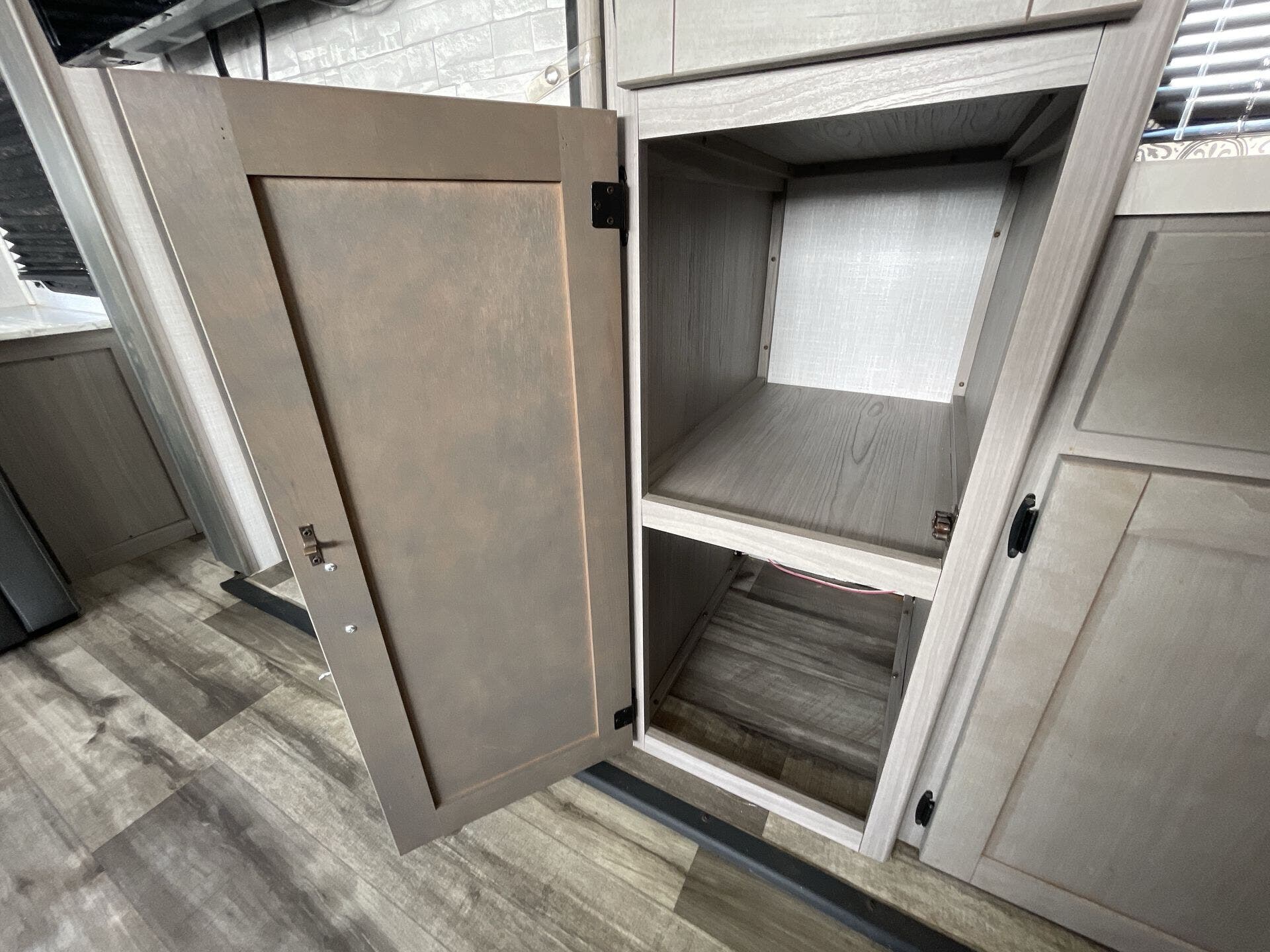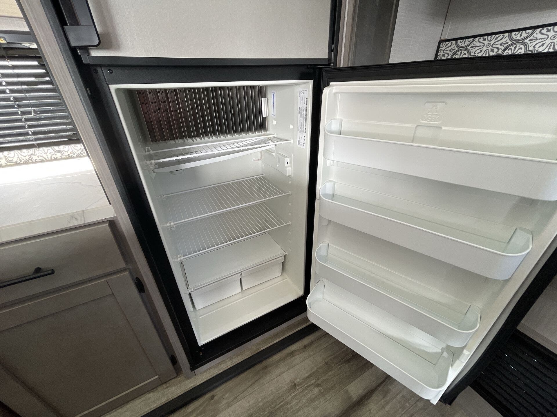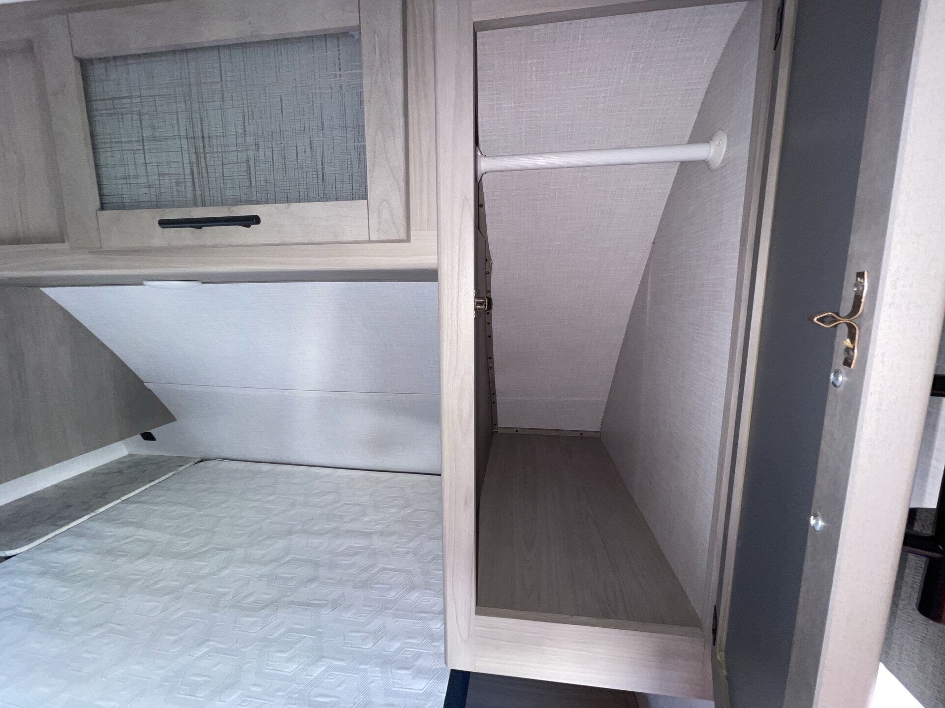 The private front bedroom offers a queen bed, dual wardrobes, and overhead storage for a restful retreat at the end of the day. The bathroom is equipped with a spacious shower, vanity, and linen storage, providing comfort and functionality. Outside, you’ll find a power awning with LED lighting, exterior speakers, and generous pass-through storage to keep your gear organized. Blending practicality with upscale comfort, the 2022 Coleman Dutchmen 2955RL is an excellent choice for RVers who want a homey, well-appointed trailer for every adventure.