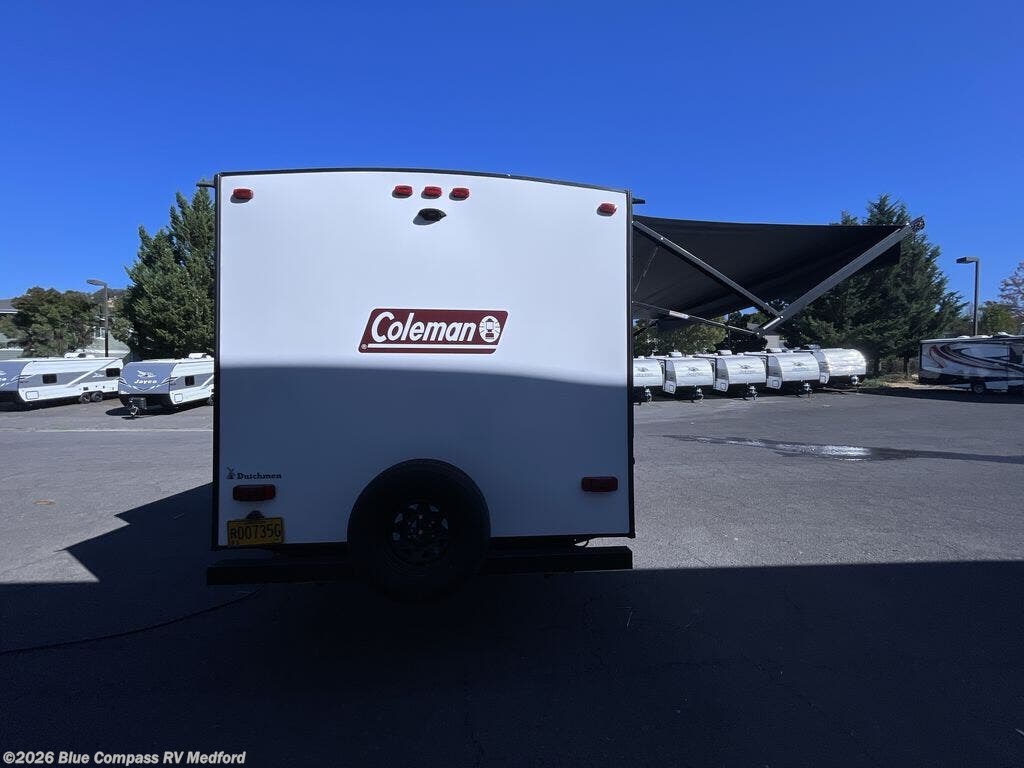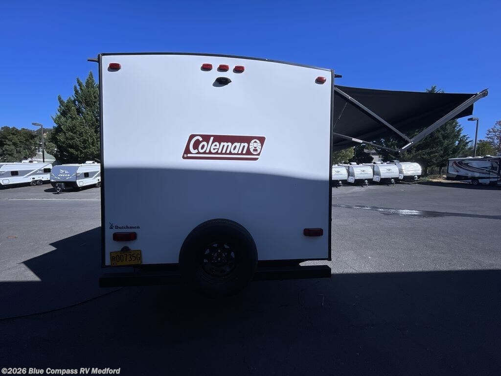 The Dutchmen Coleman Light travel trailer features an upgraded kitchen package with residential appliances, high-rise faucets, and a stainless steel farm-style sink. The fully enclosed underbelly allows all of your trailer's vital functions to be kept out of the freezing cold, and you'll have great stability as you enter your trailer by using the solid entry steps. Each model includes power stabilizer jacks, a power tongue jack, dual 20-LB propane tanks, a residential queen bed, and preparations for Wi-Fi 4G LTE. There is an aerodynamic front fiberglass cap, exterior speakers, solar charging connection, and aluminum wheels.