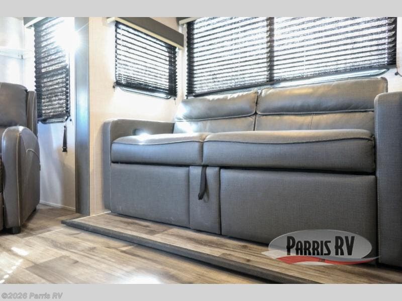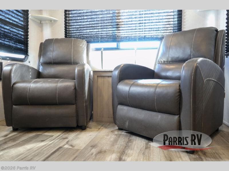 You'll feel right at home in this Coleman Light travel trailer! There are many residential comforts included on this trailer, like the residential queen bed up in the private bedroom, the two swivel rockers with end table in between, the reclining sofa, the two entry doors for great accessibility, and the fireplace for a cozy effect. The walk-through bath is a useful feature because it provides entry doors on either side which means that you can access the bathroom from the bedroom or main living area. You'll also be able to keep some extra equipment stored away in the exterior pass-through storage.