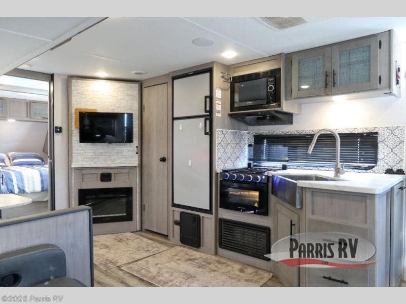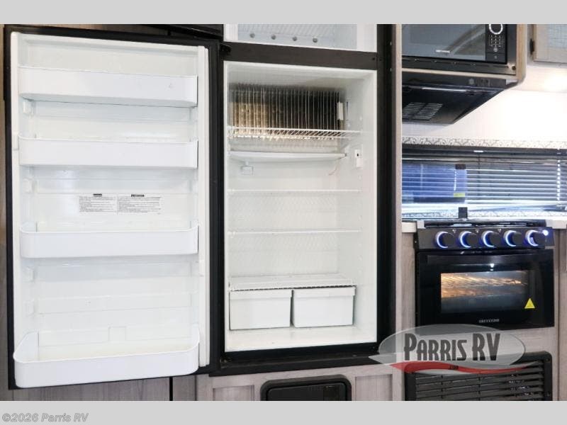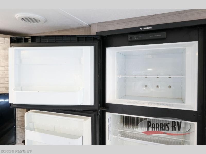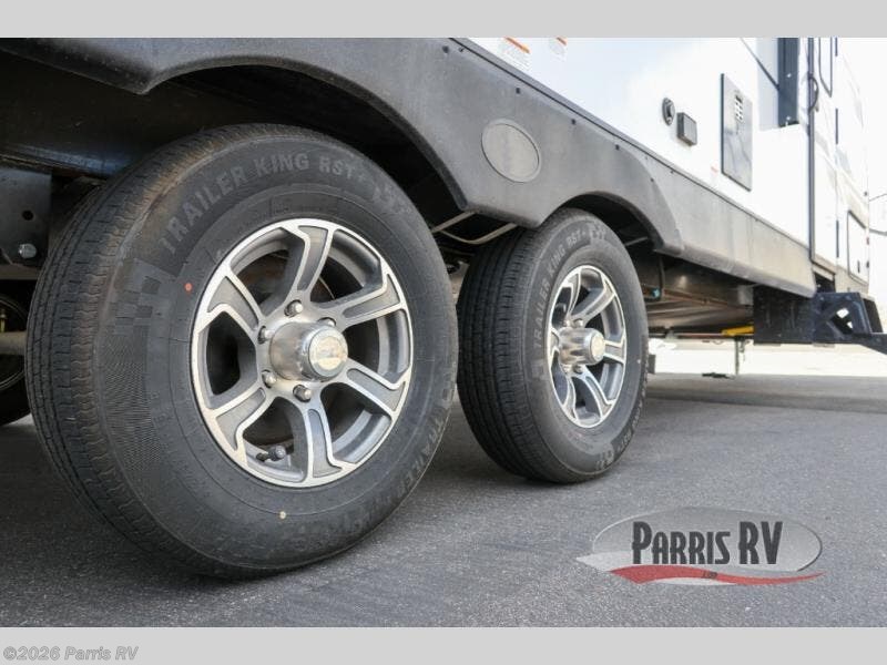 The Dutchmen Coleman Light travel trailer features an upgraded kitchen package with residential appliances, high-rise faucets, and a stainless steel farm-style sink. The fully enclosed underbelly allows all of your trailer's vital functions to be kept out of the freezing cold, and you'll have great stability as you enter your trailer by using the solid entry steps. Each model includes power stabilizer jacks, a power tongue jack, dual 20-LB propane tanks, a residential queen bed, and preparations for Wi-Fi 4G LTE. There is an aerodynamic front fiberglass cap, exterior speakers, solar charging connection, and aluminum wheels.
