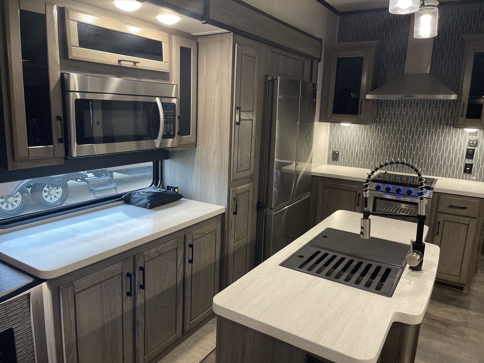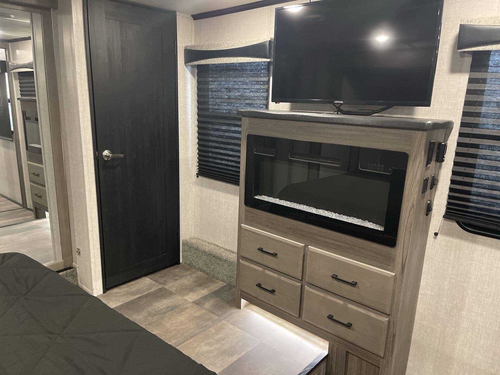 This model integrates high-end preparations and leisure features to keep every trip effortless and enjoyable. Key interior amenities include a full kitchen setup with Microwave, Oven, Refrigerator, Stove, and Stove Top Burner, plus a Water Heater for extended stays. The living area is equipped with Theater Seating and a TV, complemented by a comforting Fireplace. You’ll rest easy with a Medicine Cabinet, Shower, Toilet, and a complete safety package including CO Detector, LP Detector, Smoke Detector, and Fire Extinguisher.