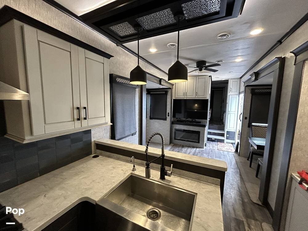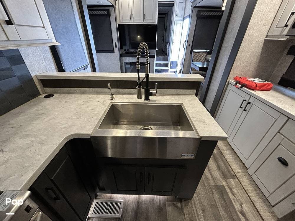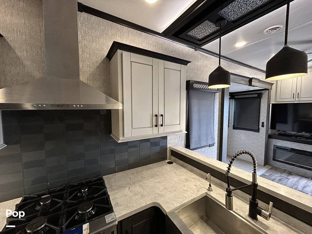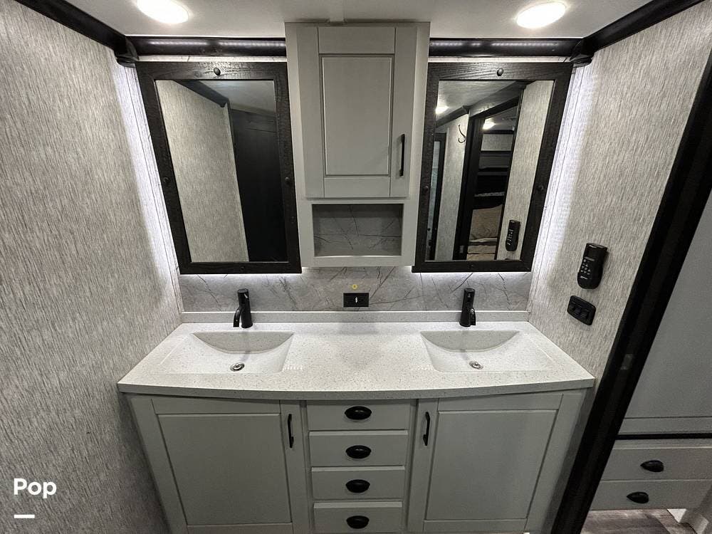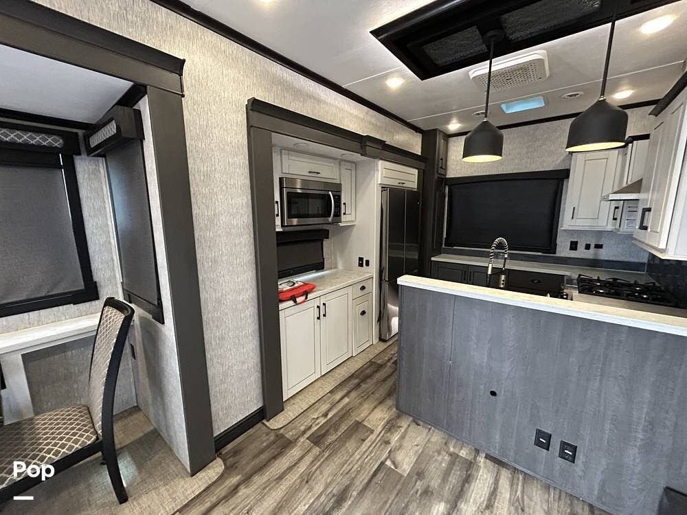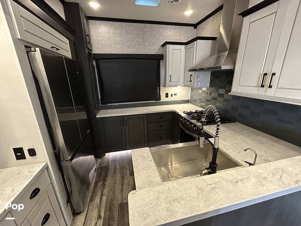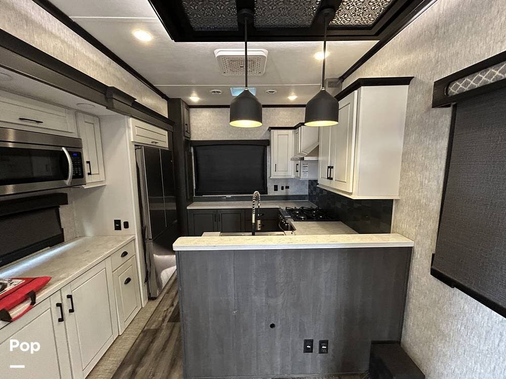 This 2022 Redwood 4001LK is a 42-foot fifth wheel located in Lindale, Texas. Manufactured by Crossroads RV, it represents the top tier of luxury fifth wheels and offers all the comforts of home in a well-designed, residential-style package.