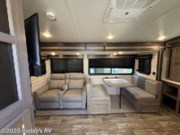 You will love this trailer for many reasons beginning with having dual entry for easy access to the spacious rear bedroom or the main living and kitchen area. The cook will love the front kitchen with lots of counter space, a window to enjoy the view and all the kitchen amenities to make warm meals for the two of you plus anyone that visits. The slide out sofa and booth dinette offer sleeping space for the grandkids on top of relaxation inside when you aren't outside under the electric awning with LED strip. You will have a full bathroom to get cleaned up after a fun day outside, and a rear master bedroom with a king bed slide out, storage and a rear window for more great views!