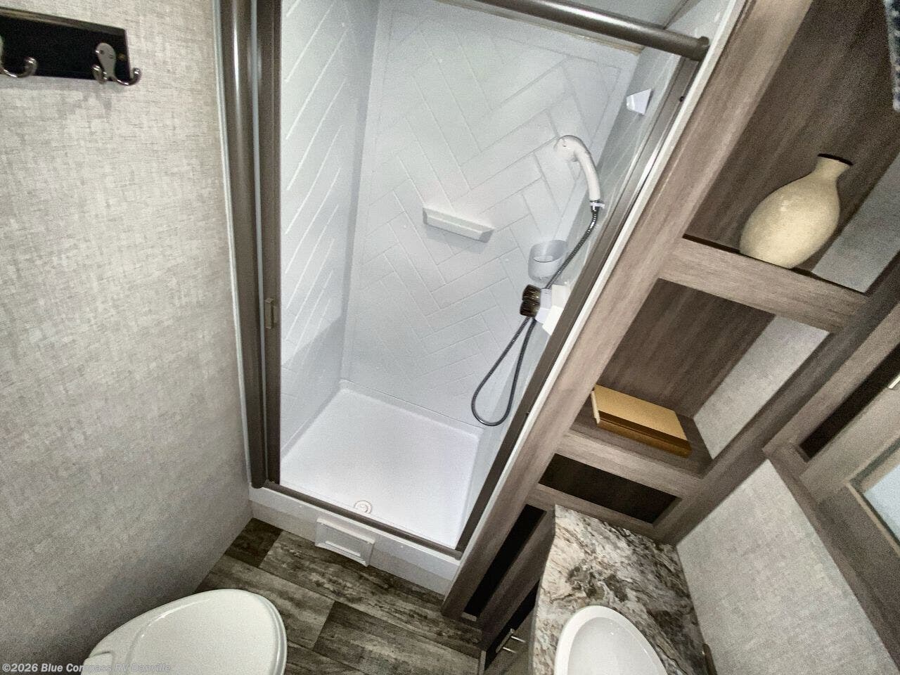 With any Sunset Trail travel trailer by CrossRoads RV, the interior offers a stainless steel farmhouse single bowl sink with a cover, solid surface countertops in the kitchen, a 12 volt refrigerator, USB ports in the bedroom and main area, and a Connexx entertainment TV with soundbar for inside enjoyment. Also included is the Extreme Weather package with maximum insulation with reflective foil, a 30,000 BTU furnace, and a 2" heat duct in the enclosed underbelly for four seasons of traveling. And the Blade Air system offers 20% more airflow and re-engineered components on the A/C. The HyperDeck flooring is water resistant, fiberglass reinforced and has polypropylene layers. Make your lightweight and comfortable RV decision today!