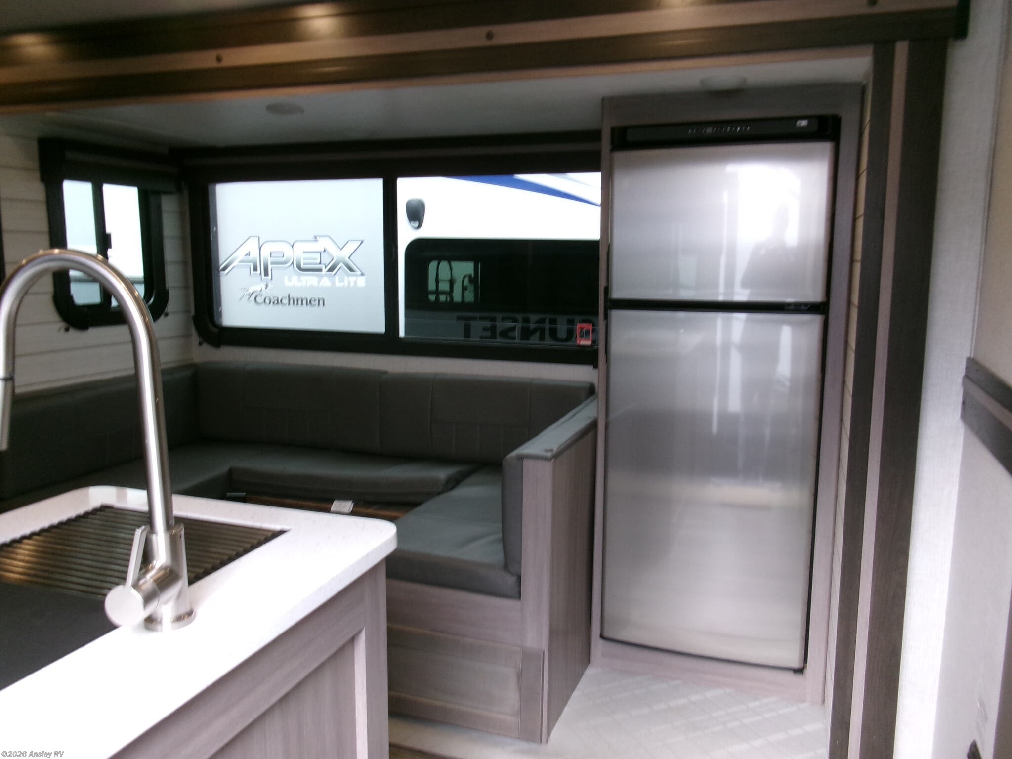 Enjoy camping with the "All Inclusive" features built in every Super Lite: 6 Sided Aluminum Construction, Glass Top Range, King Bed, Solid Surface Kitchen Countertops, LED Interior Lights, Extreme Weather Package, Radius Rafter and a Fiberglass Front Cap. Not only is there a multitude of high-end included features, Sunset Trail also comes with many upgrade options such as a second air conditioner, free-standing dining room table and many more! One unique feature is the barreled ceiling. This gives the interior a more spacious feel, helping the Super Lite feel more like home.