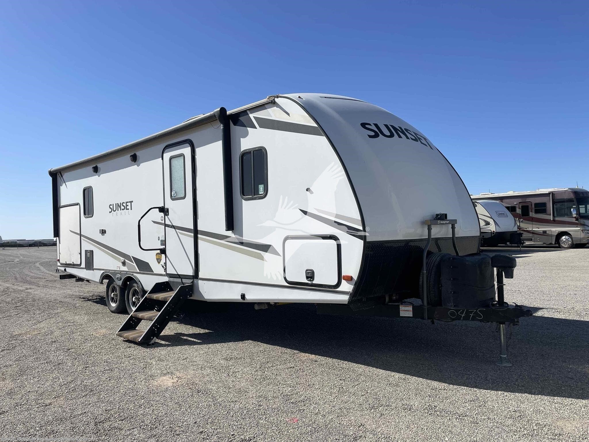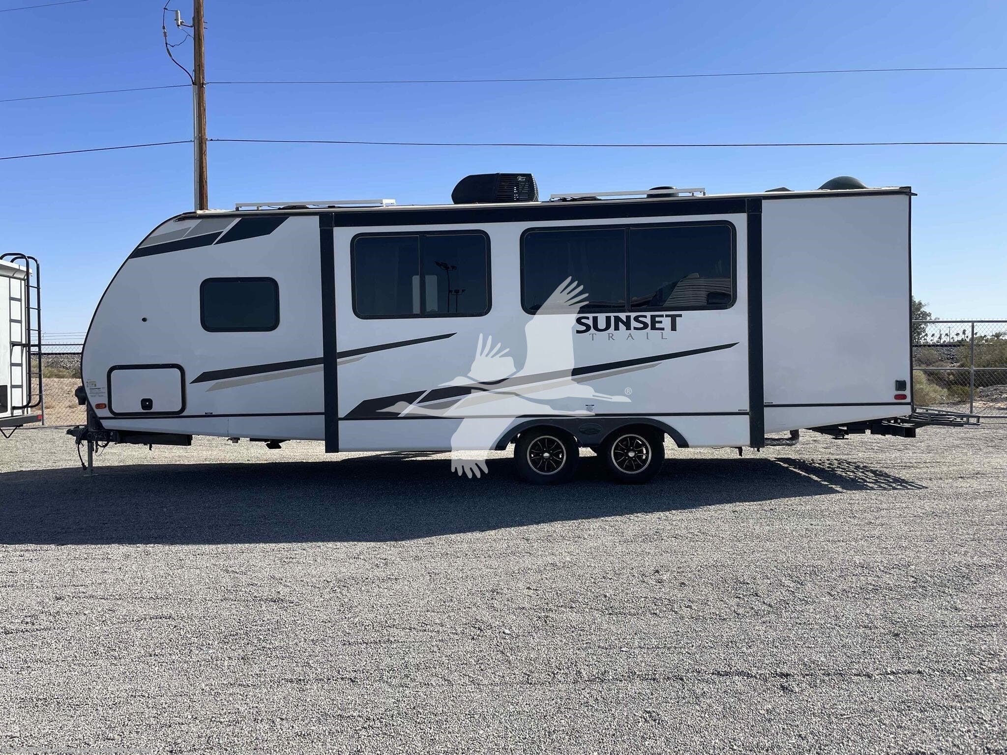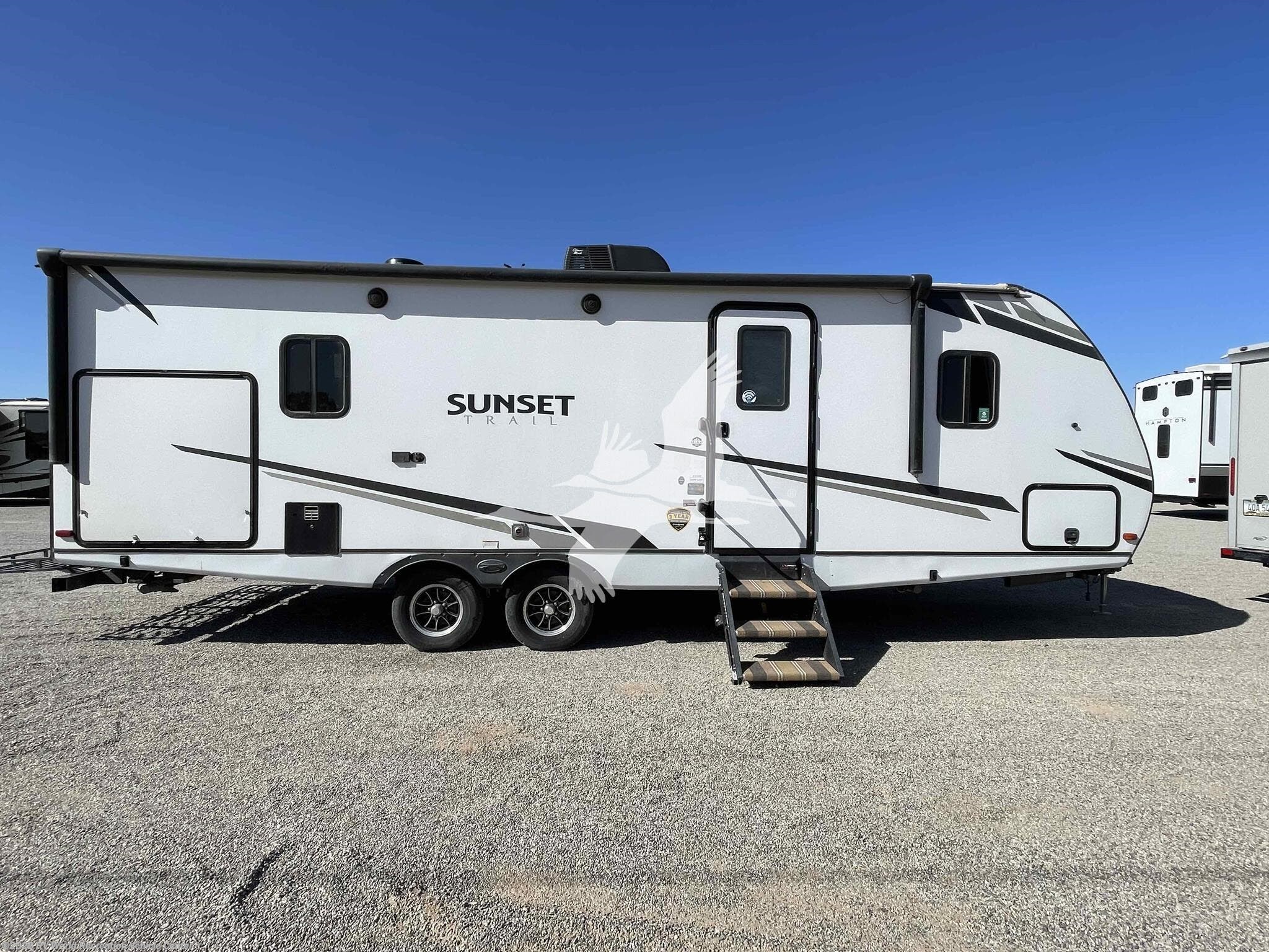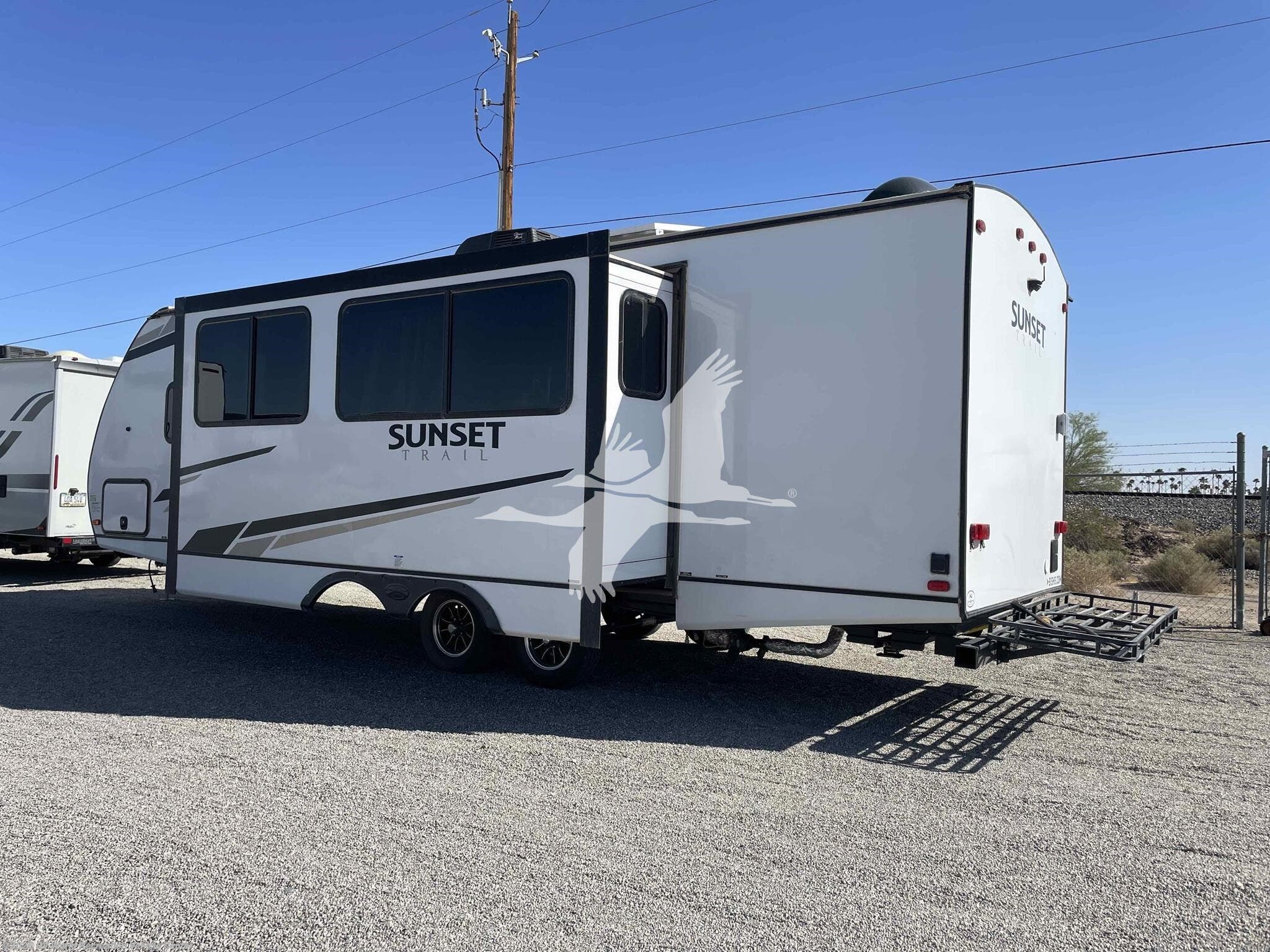 ****Stk#: CW18589A.**** ***MANAGERS SPECIAL!*** The Sunset Trail 253RB, a spacious travel trailer designed for the modern RV enthusiast. This unit features a king bed, an XL booth that converts for extra sleeping space, and a tri-fold sofa for relaxation. With amenities like an outdoor kitchen and ample storage, the 253RB is perfect for family adventures and weekend getaways. The 253RB weighs in at around 6,000lbs so it can be towed by many half-ton trucks and SUV's. Check your vehicles owners manual for your towing capacity. Other features on this 30' trailer include 400-watts of solar, a lithium battery, LED TV, Stereo, 2 door refrigerator, microwave and standard ovens, glass enclosed shower, exterior Camp Kitchen, power tongue jack, 5 point electric stabilizer jacks, power awning, and more...
