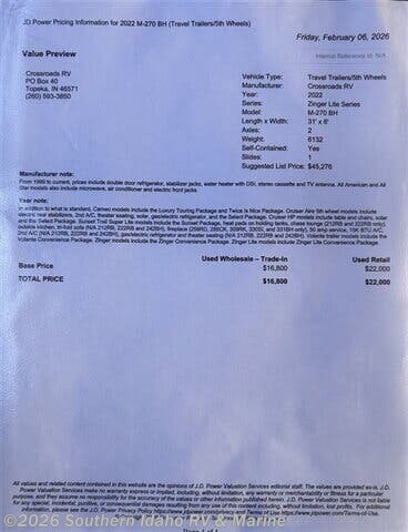 Request More Info on this 2022 CrossRoads Zinger 270BH Offered for sale by Southern Idaho RV & Marine