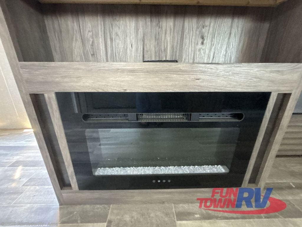 Head out on your greatest adventure with this travel trailer! You will feel right at home with the rear private bedroom featuring a 60" x 74" RV queen bed with shirt closets on either side and overhead cabinets above to store your items. The full front bathroom allows two to get ready at once with the dual-sink vanity, and the closet is prepped to add the optional washer and dryer for you to wash your clothes and in result, pack less clothes. The dual entry doors make for a smooth flow of traffic in and out of the unit, and the 60" jackknife sofa across from the entertainment center with a fireplace and 39" TV is the perfect place to wind down your nights!