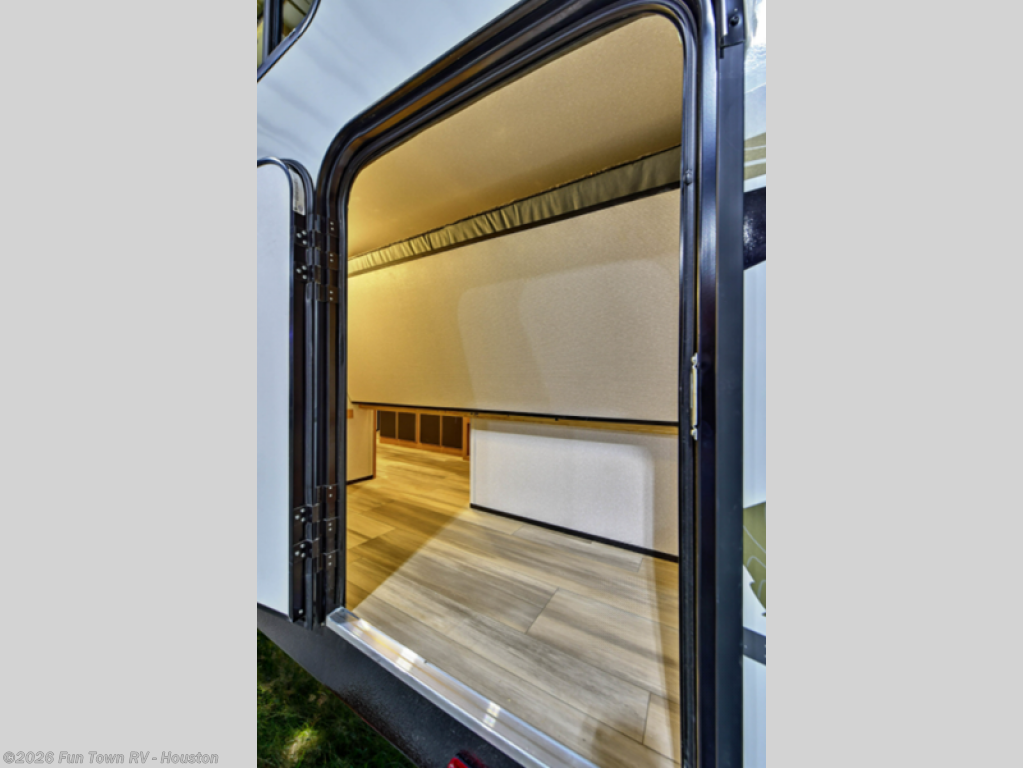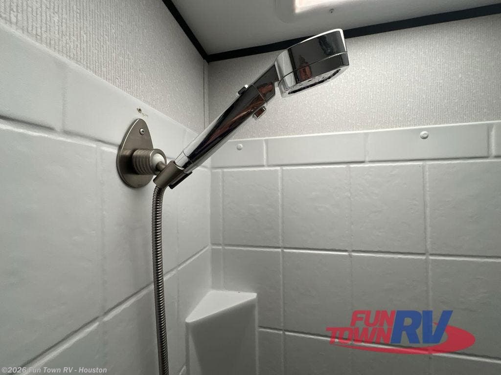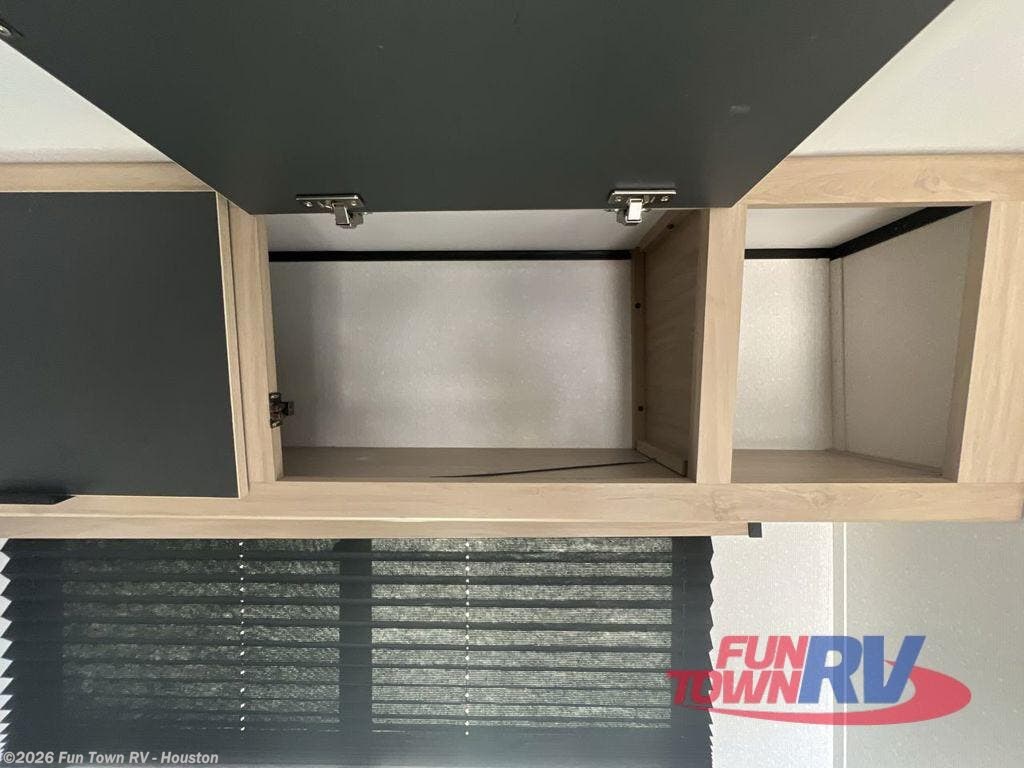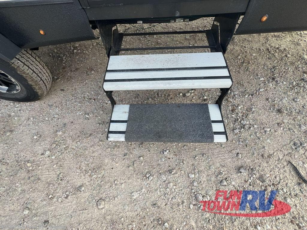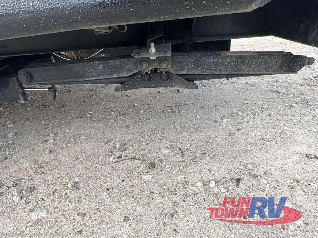 The whole family can camp comfortably in this travel trailer! The kids can sleep on the set of double bunk beds and you can sleep on the front queen bed with drawers underneath to store your necessities. The booth dinette could also transform into an extra sleeping space when you aren't using it to enjoy a meal prepared with the two burner cooktop and 8 cu. ft. refrigerator. Everyone can stay squeaky clean with the shower in the rear corner bathroom. Don't leave any outdoor gear behind when you have a front exterior full pass-through storage area for it all!