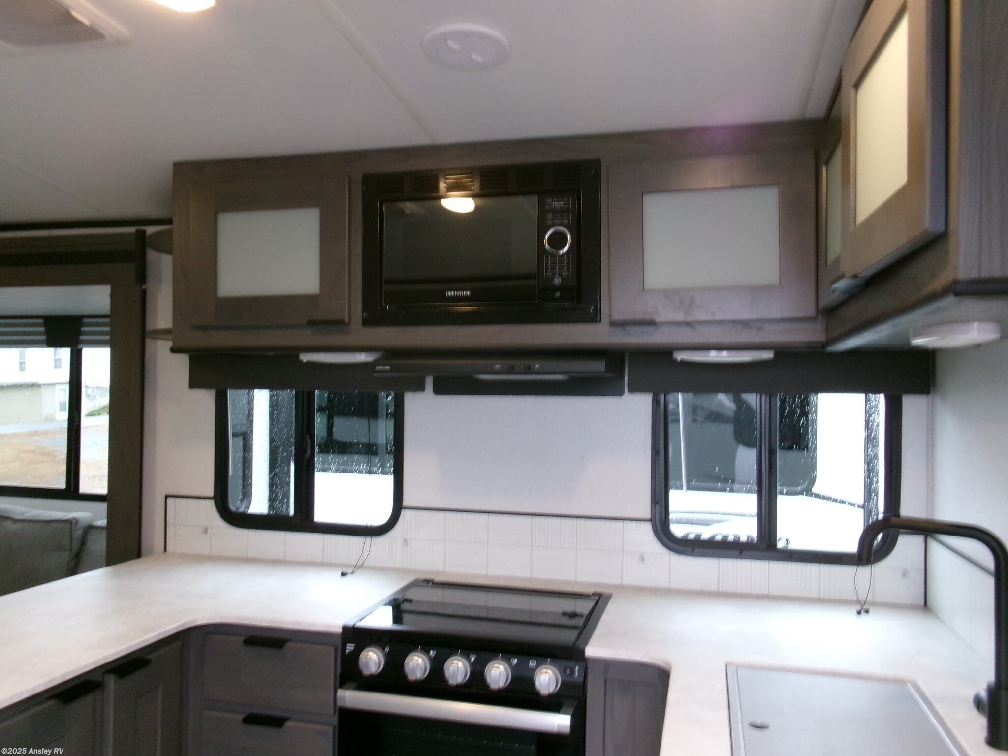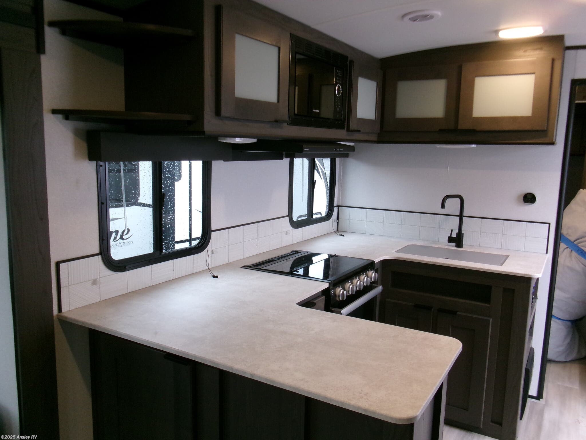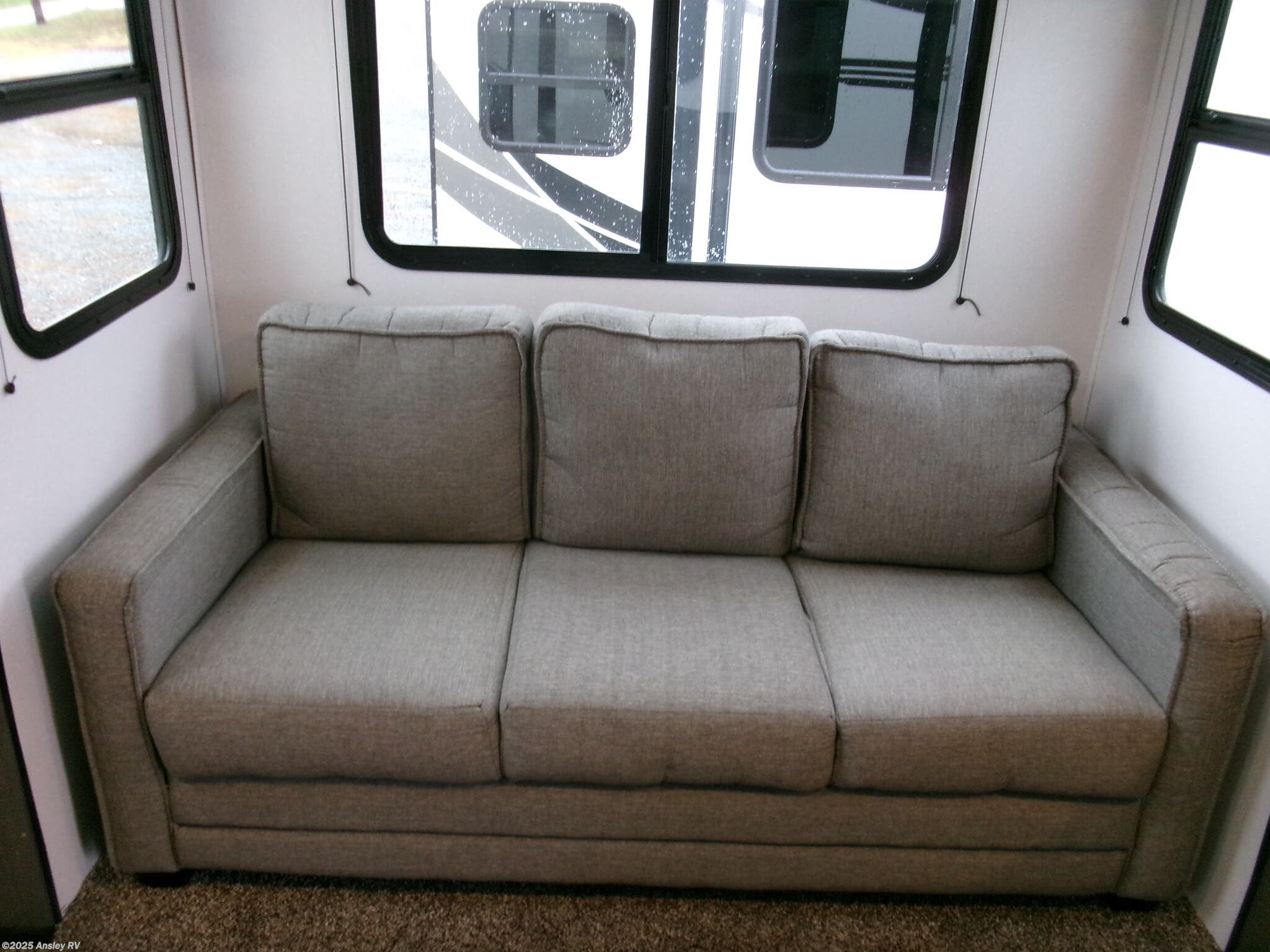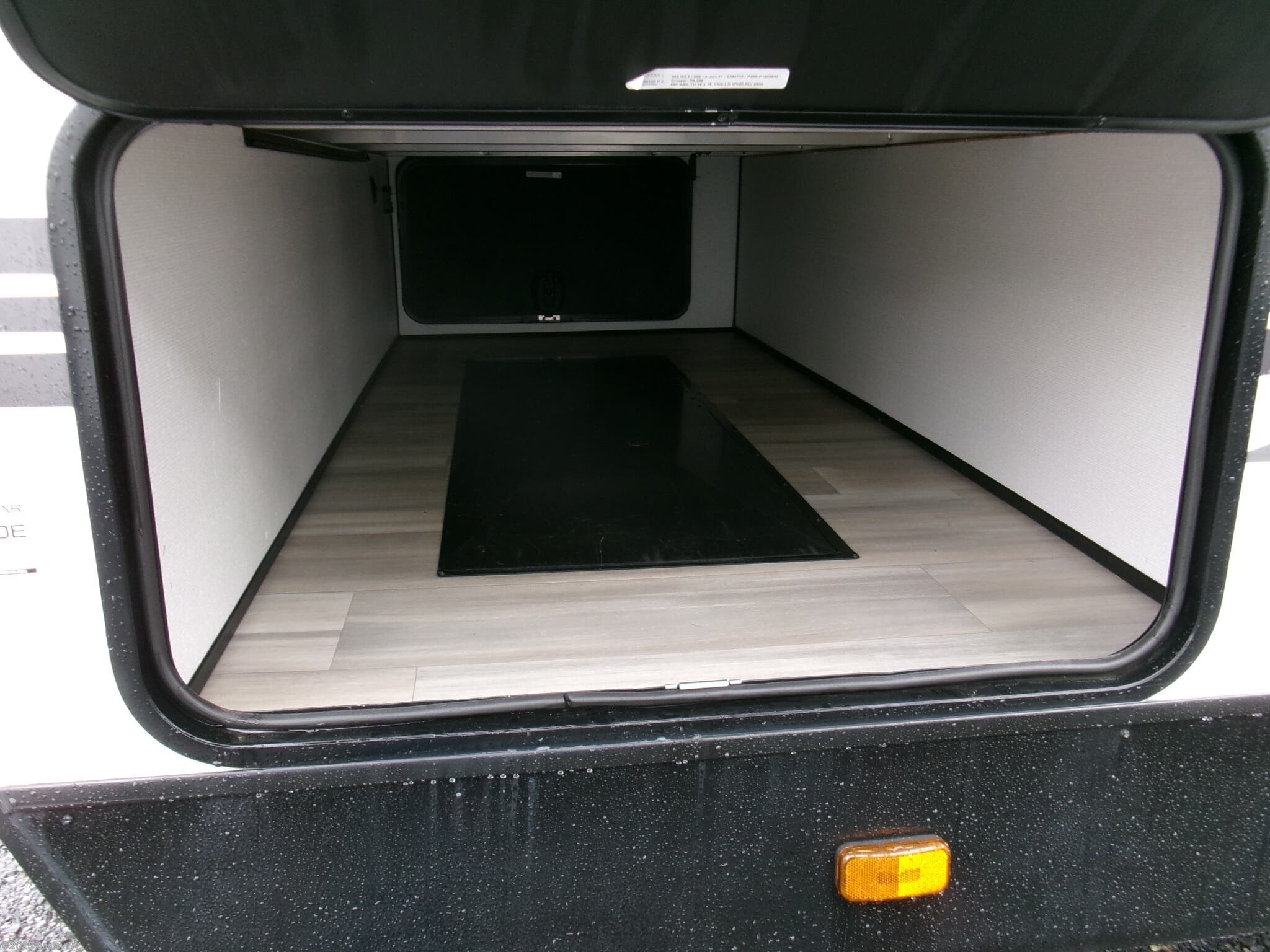 This model features a spacious interior with all the amenities you need for a comfortable camping experience. The living area is cozy and inviting, with ample seating and storage space. The kitchen is equipped with modern appliances and a generous amount of counter space for meal preparation.