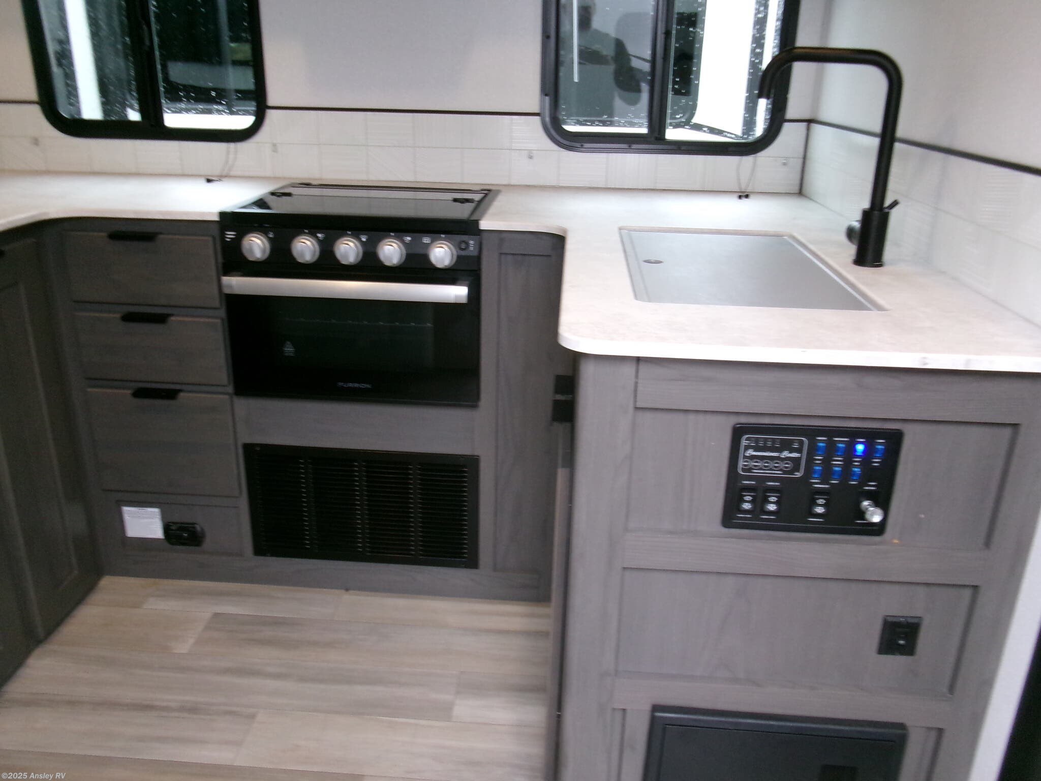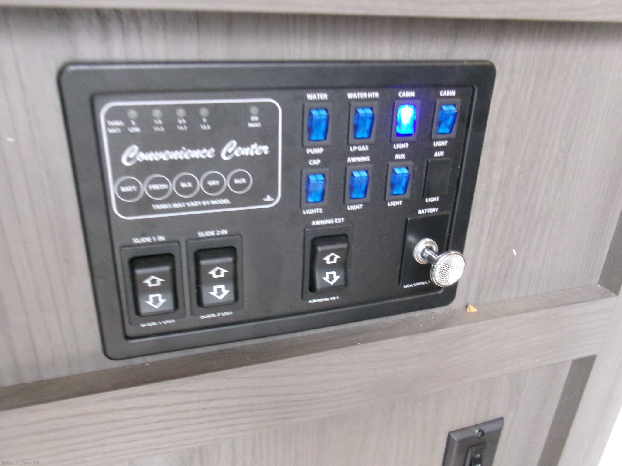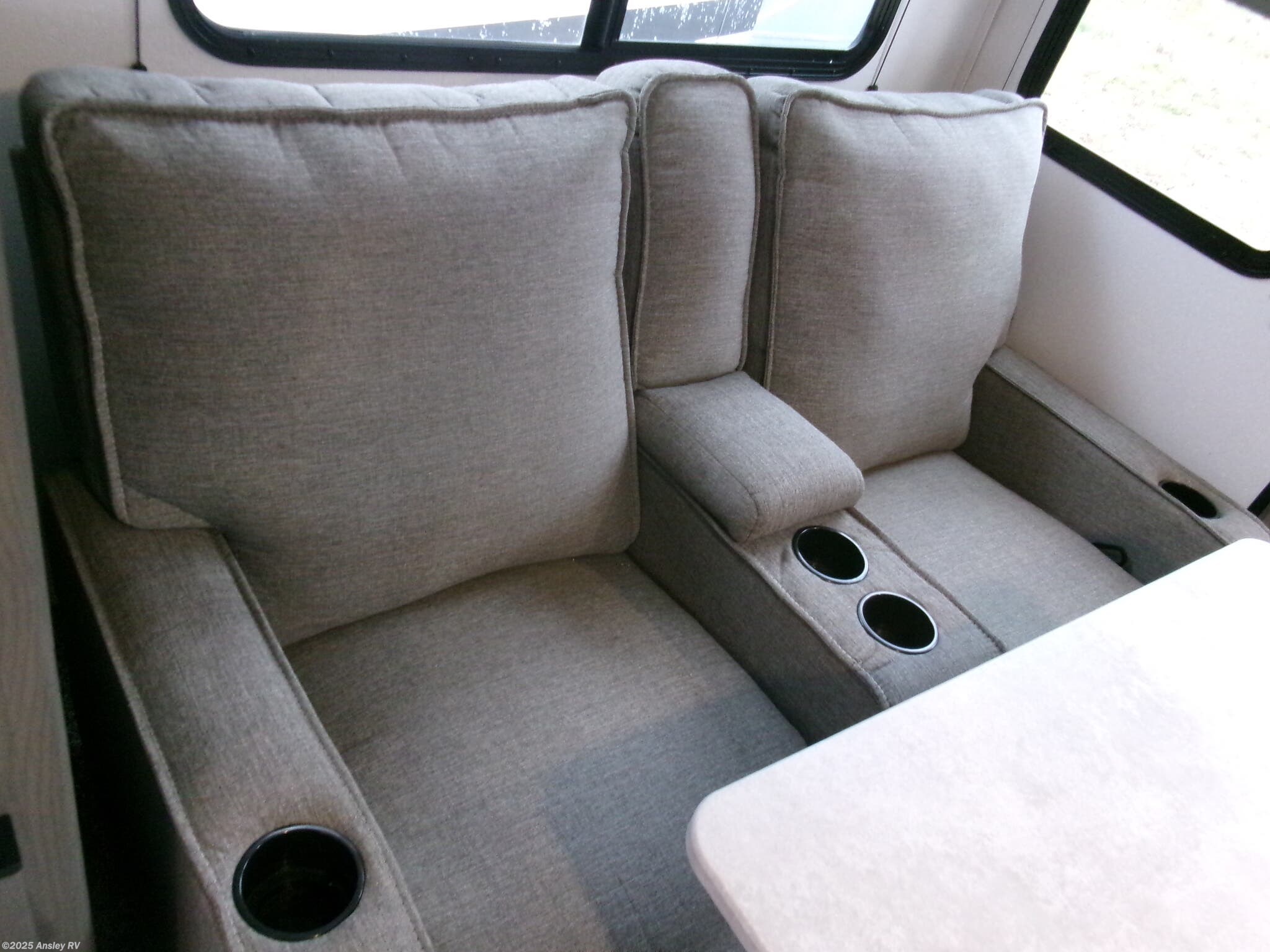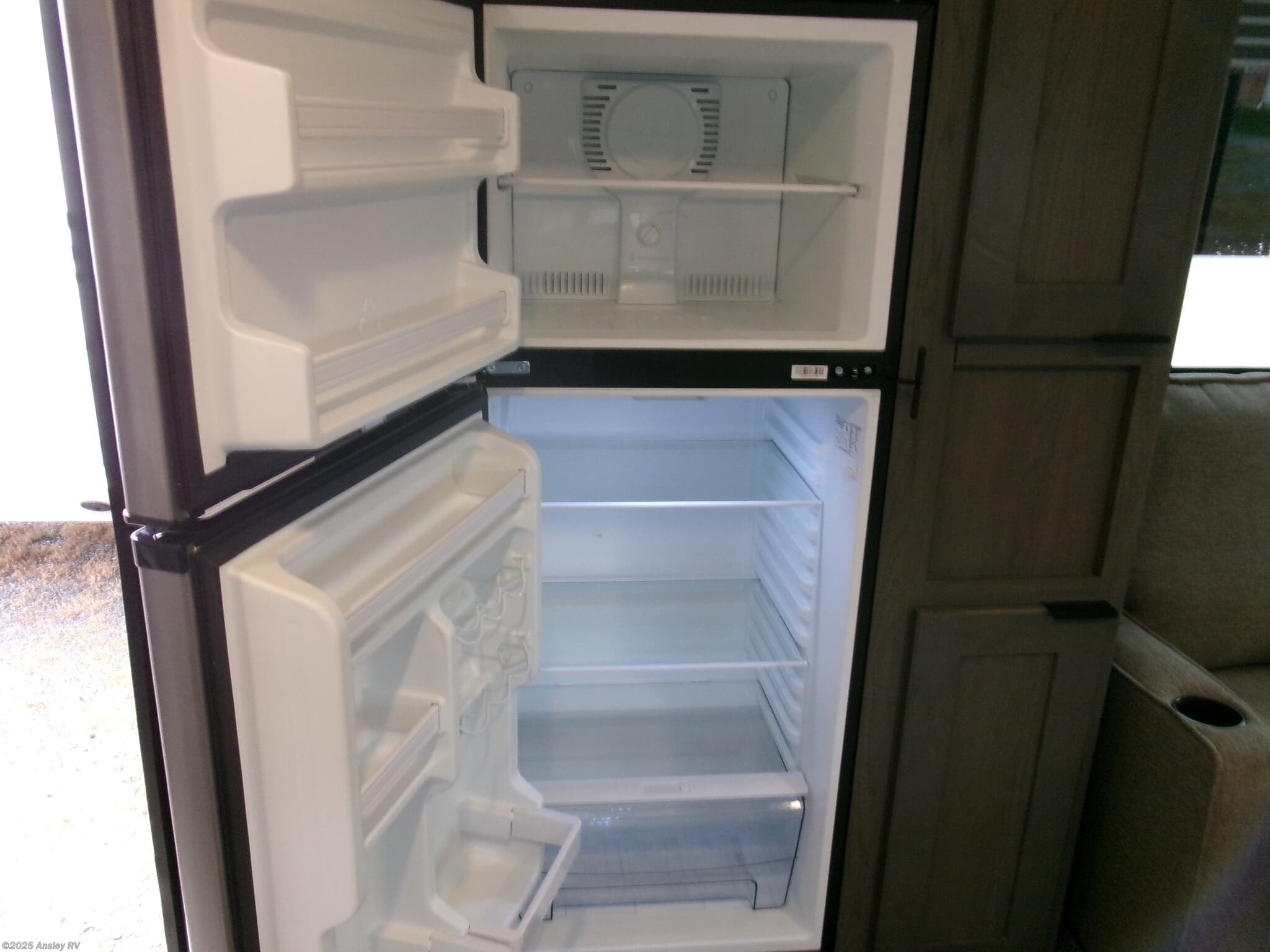 This model features a spacious interior with all the amenities you need for a comfortable camping experience. The living area is cozy and inviting, with ample seating and storage space. The kitchen is equipped with modern appliances and a generous amount of counter space for meal preparation.