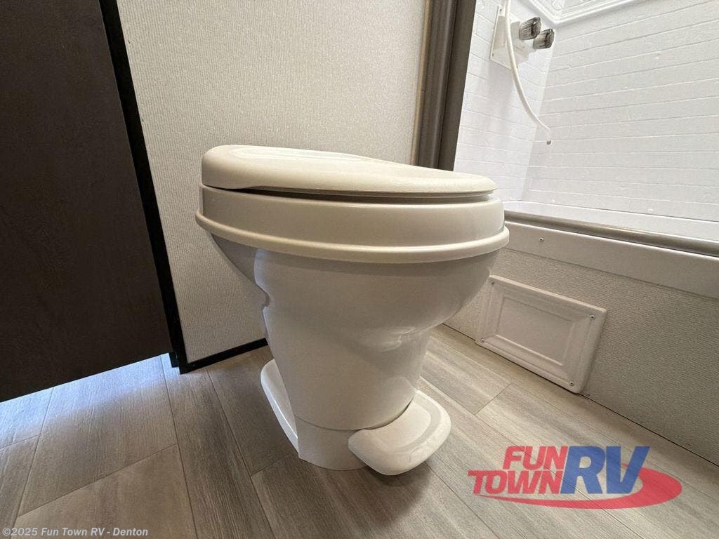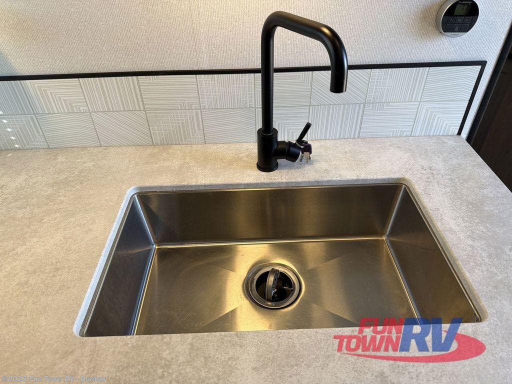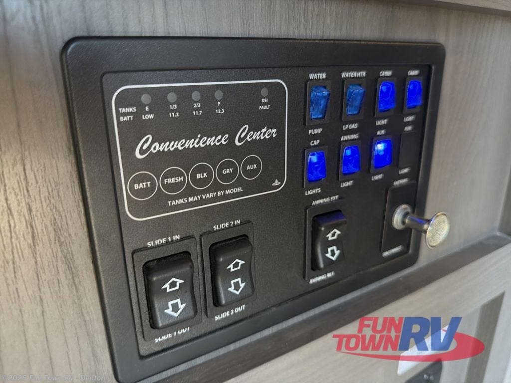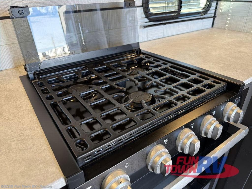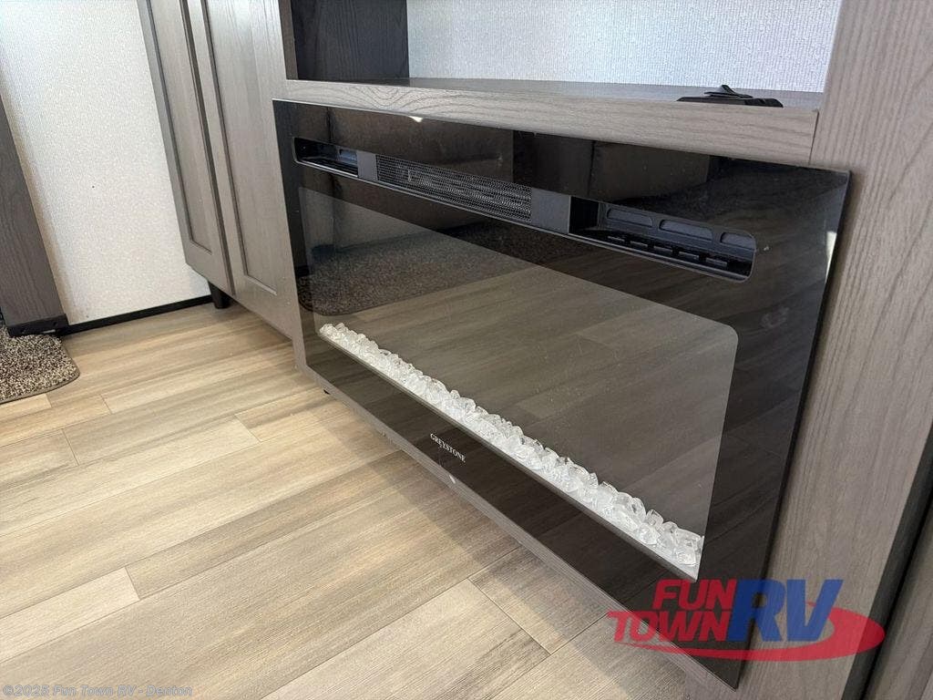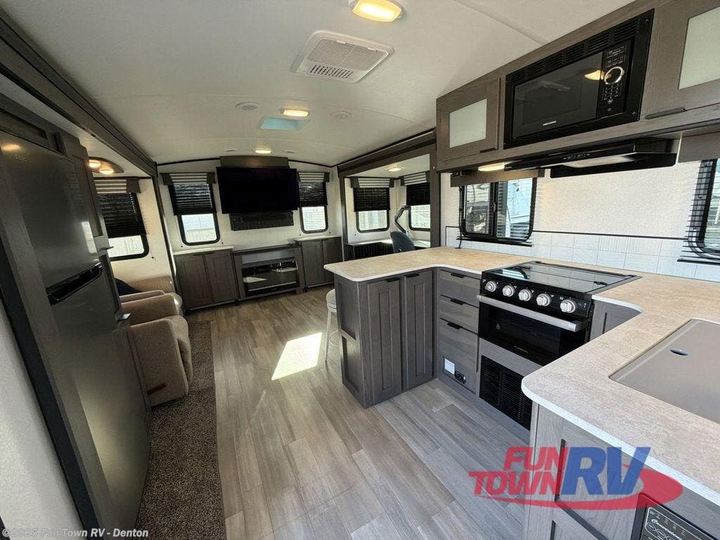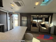 This model will feel just like home with its spacious living area and front private bedroom. There is a rear entertainment center, and you can add the optional LED TV here for movie nights. Your crew can visit on the two sofas, plus one sofa includes a table where you can play a game of cards or dine together. The chef will love the kitchen that includes tons of counter space, a three burner cooktop, plus a 10.7 cu. ft. double door refrigerator. And don't overlook the walk-through bath and front master bedroom!