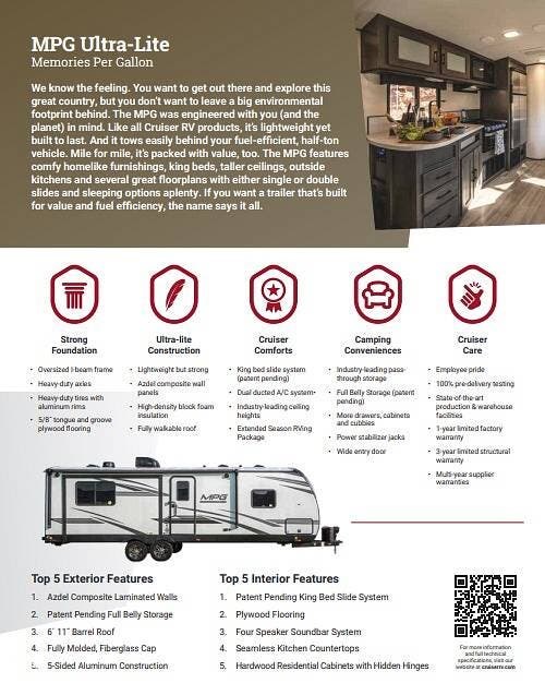 Looking to buy a 2022 Cruiser RV MPG Travel Trailer RV?