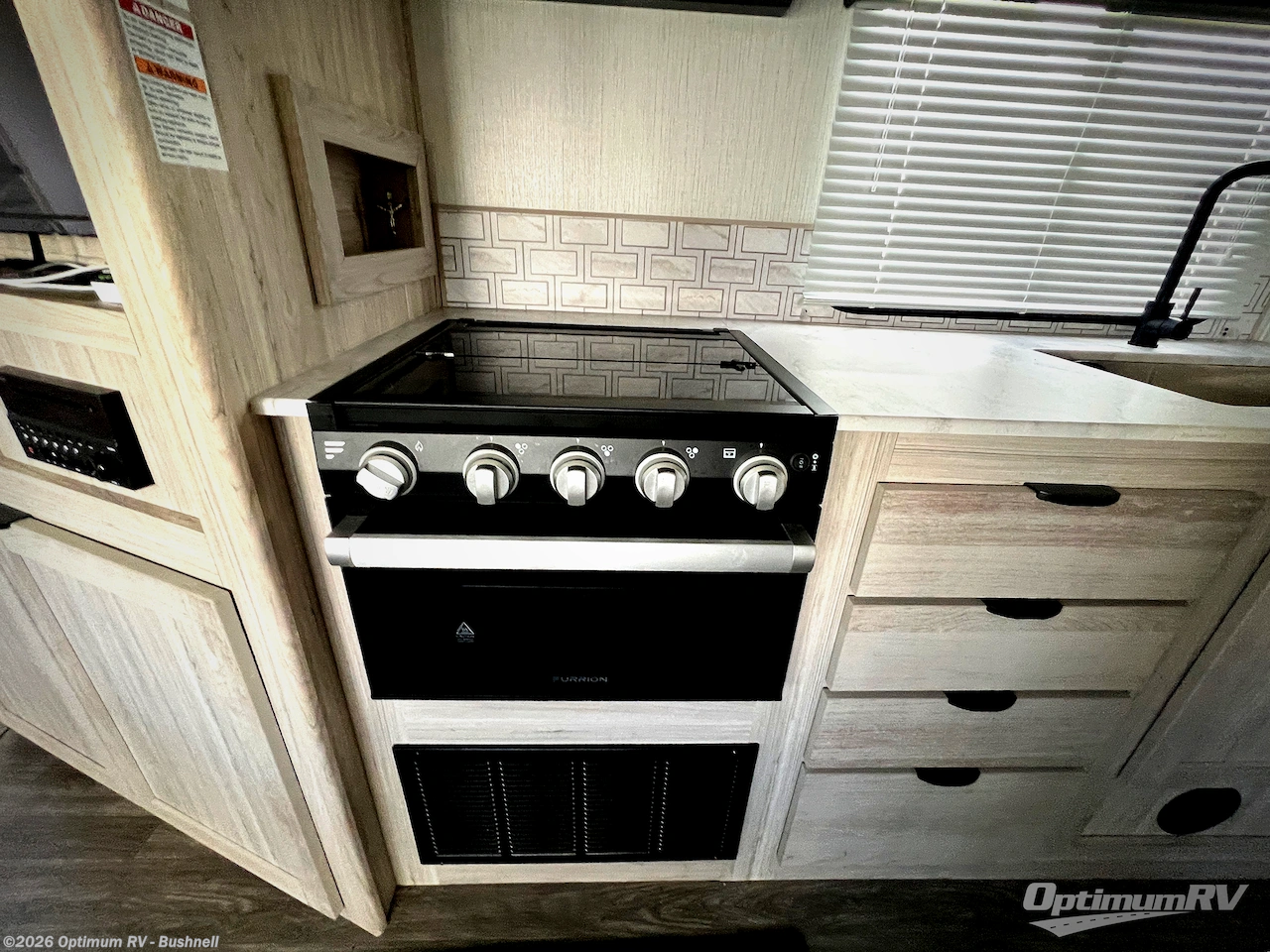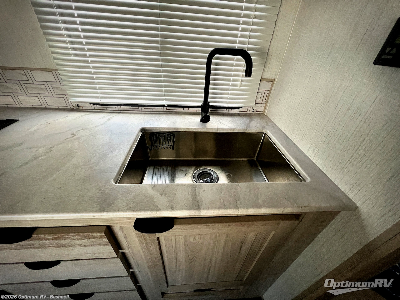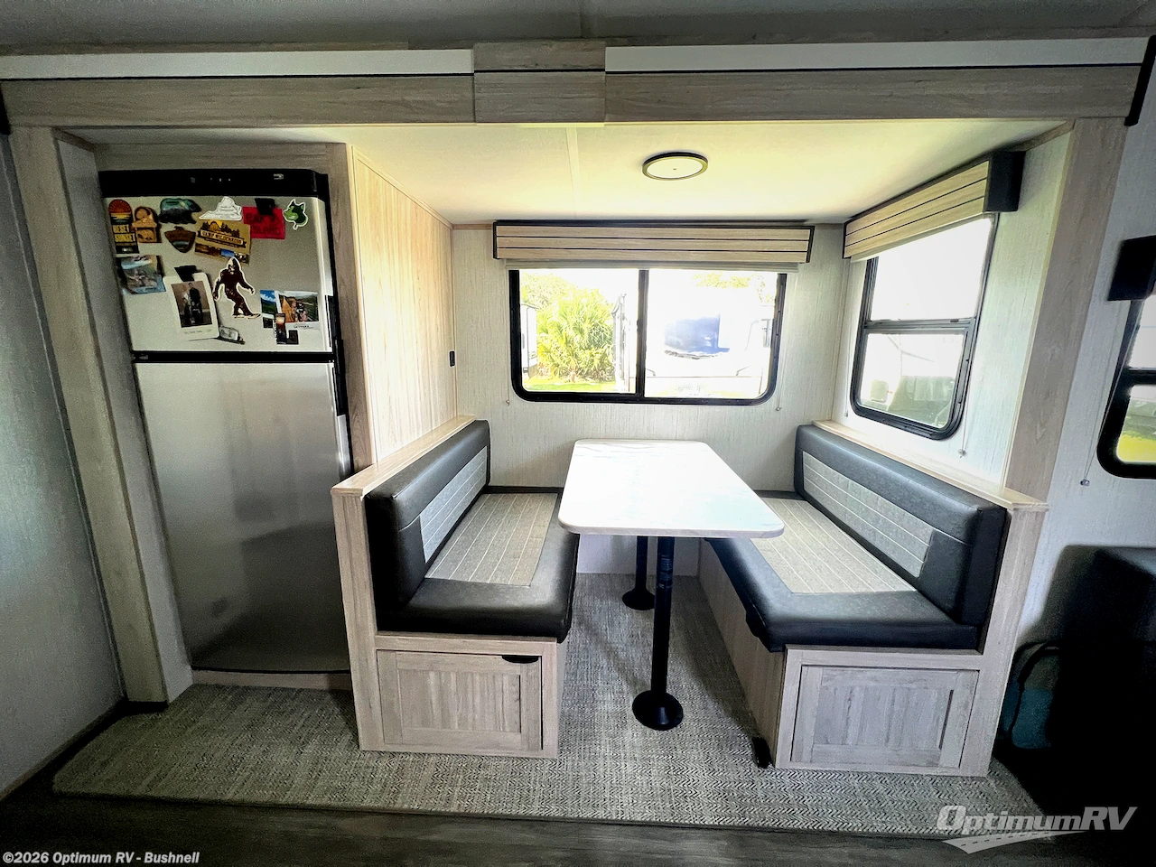 Your whole gang will have a fun time camping in this travel trailer! There are plenty of sleeping spaces between the set of bunk beds, the patent pending king bed sliding system with a pet palace underneath, and even the booth dinette and sofa once converted. Prepare your best meals either indoors with the three burner cooktop or head to the outside kitchen with a two burner cooktop to breathe in some fresh air while you cook. Everyone will stay clean with the rear corner bathroom and the exterior full belly storage system has enough room for all of your outdoor gear!