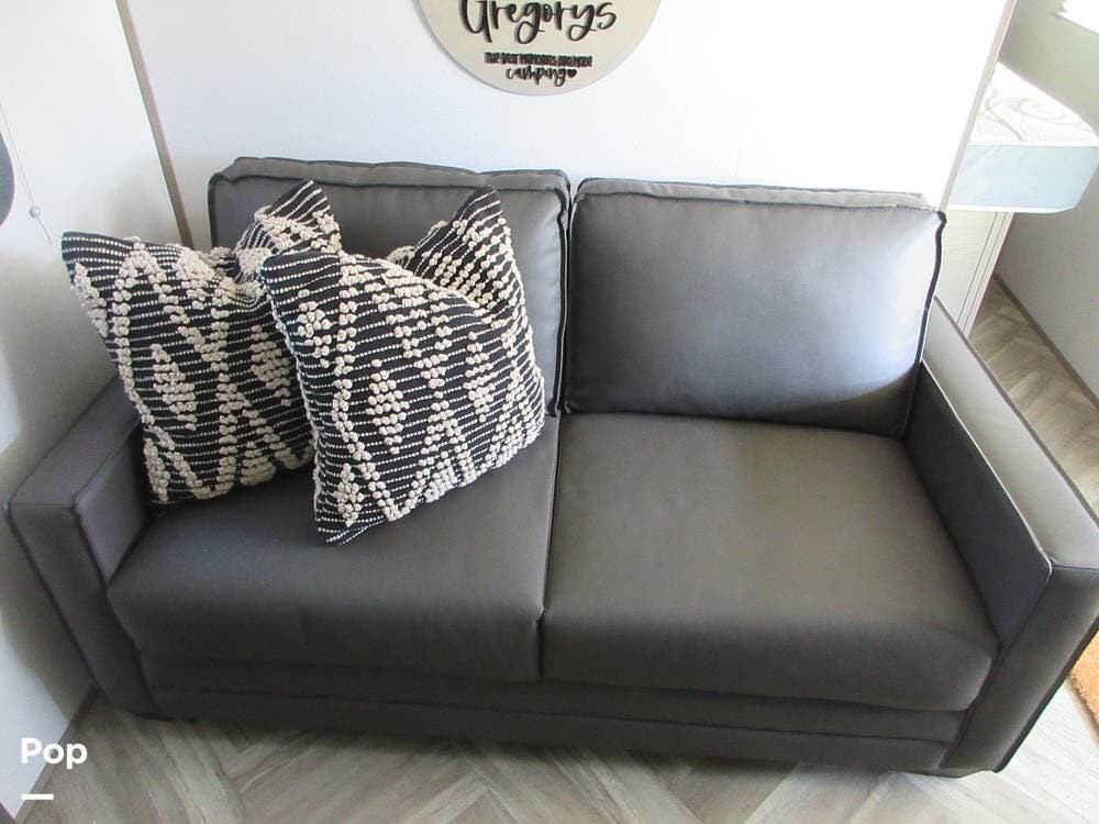 2022 Shadow Cruiser 259BHS with an open floor plan with a sofa/sleeper and a dinette that converts to a sleeping option. A TV and a stereo for entertainment.