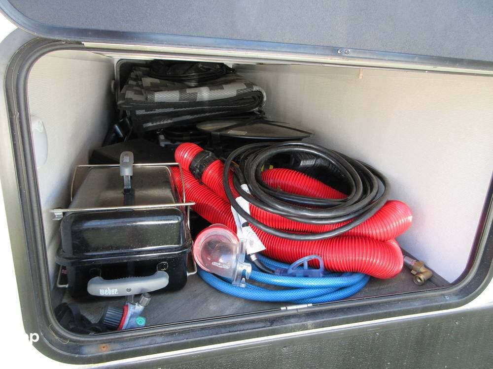 A large awning next to the outside kitchen. Plenty of storage areas and ready to get back "On The Road Again" now!