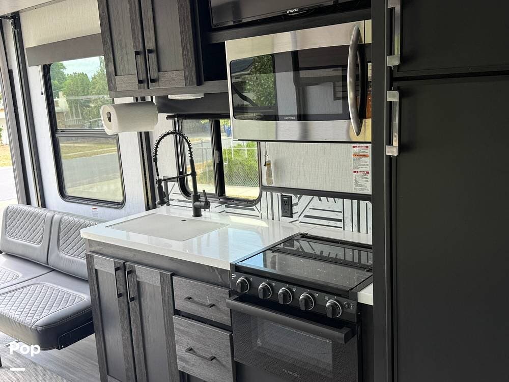 When it's time to relax, the Stryker wraps you in comfort. Enjoy a full kitchen complete with solid-surface countertops, a high-rise faucet, a 3-burner range, and a large 10.7 cu. ft. refrigerator.