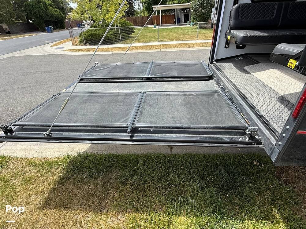 Step inside and discover a world where rugged utility meets modern comfort. The spacious 13-foot garage easily accommodates your gear, transforming into a versatile living space with roll-over sofas, a removable table, and an optional power queen bed above. D-rings anchored to steel plates ensure your toys are securely locked in, ready for the next adventure.