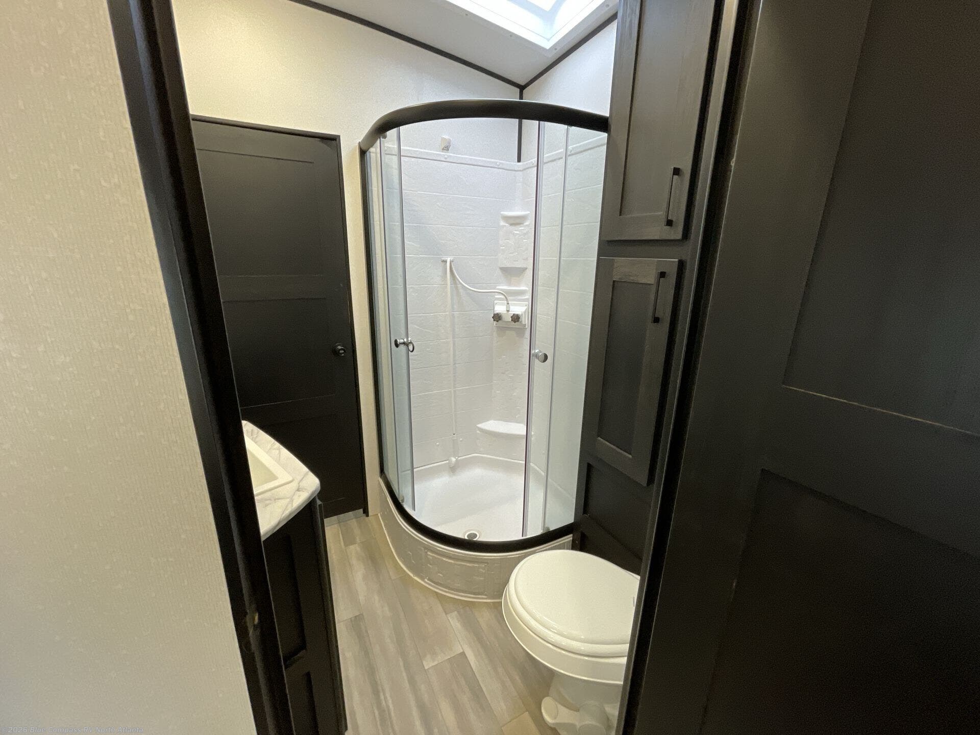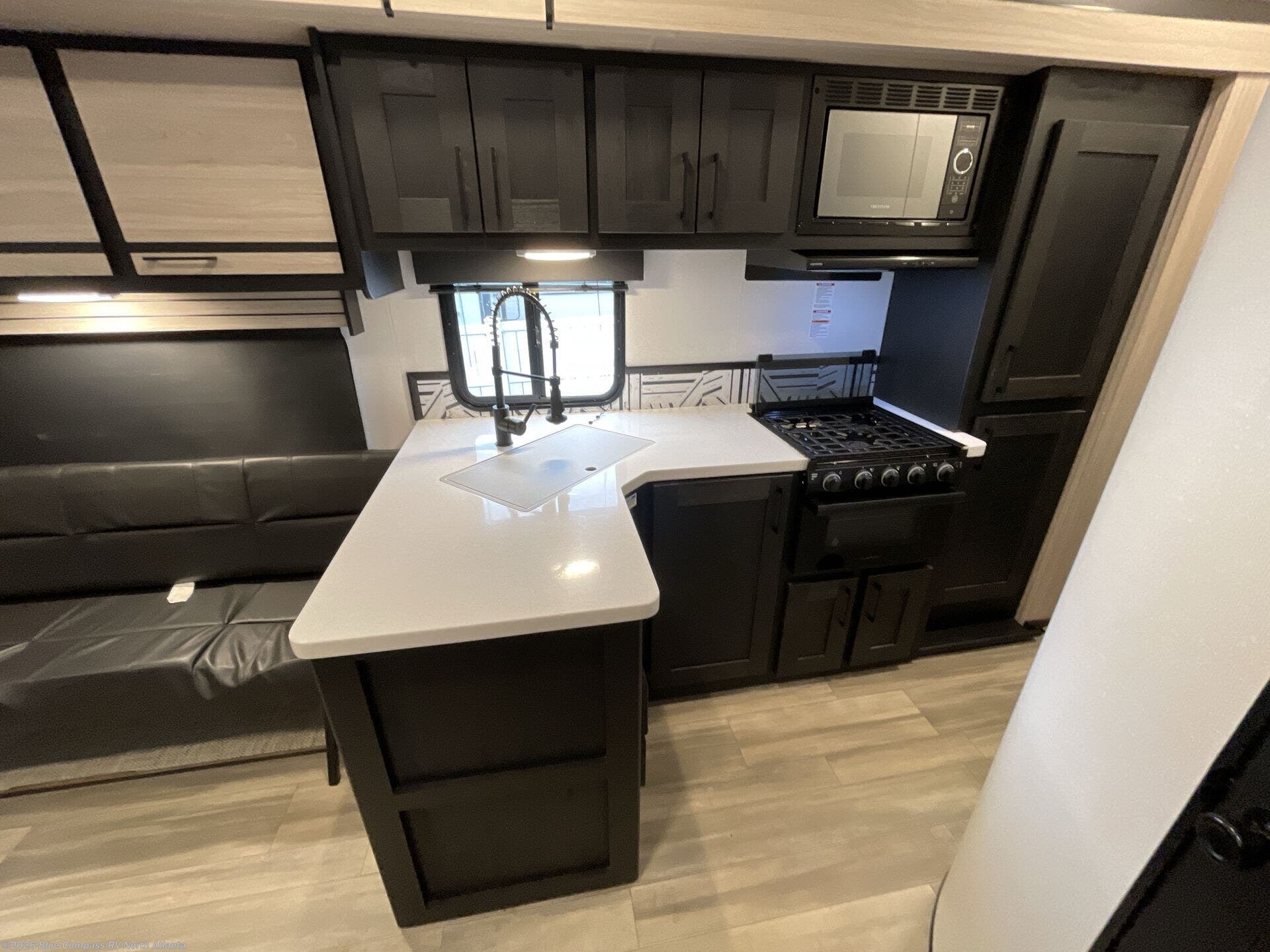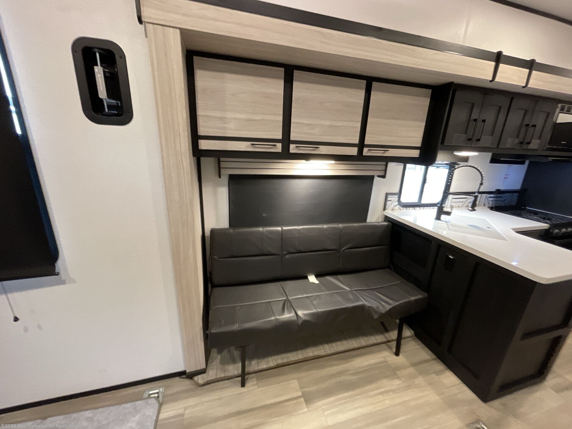 You can't go wrong with this dual entry toy hauler in tow! Once you arrive at the campground, fill up the bikes using the convenient 30 gallon fuel station, then head out on a trail or two! There is a dual entry bath on board that will allow you to clean up before heading to the kitchen to start dinner. You will love the large slide out that will provide more space when cooking, and there is a sofa with a table to dine at. You may just want to kick back on the dual lounge chairs before starting the dishes. Sleeping space can be found on the king bed in the front master, or on the opposing sofas and power queen bed in the garage!