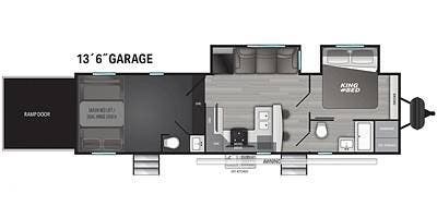 It has a huge garage for the size of this toy hauler. Whatever your target destination or purpose, there is plenty of space for SXSs, ATVs, motorcycles, or golf carts!