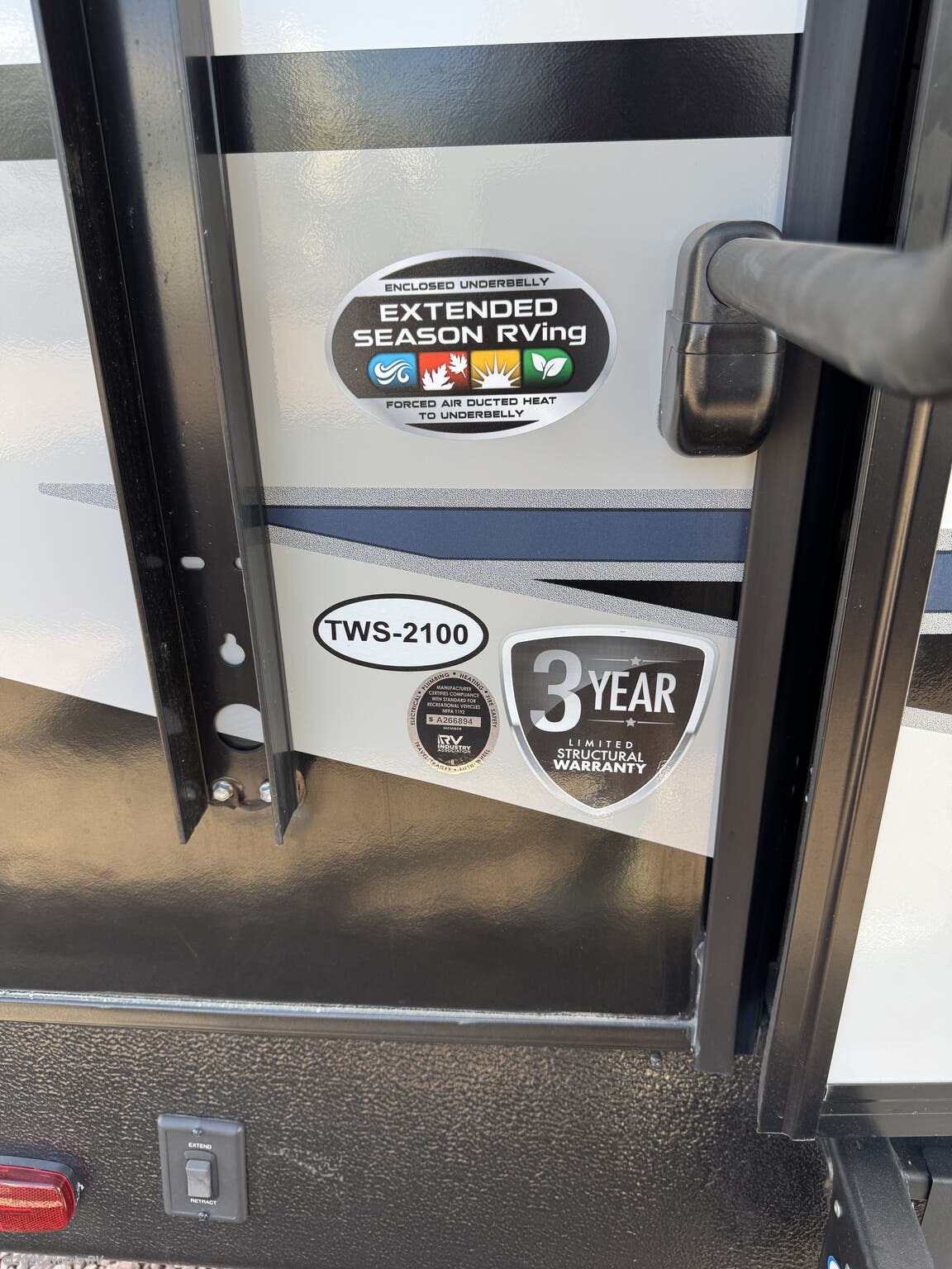 Black Tank Flush, Detachable Power Cord, Electric Jack, Enclosed Underbelly, Fiberglass Sidewalls, Pass Thru Storage, Power Awning, Power Hitch Jack, Roof Vent, Screen Door, Skylight, Slideout, Stabilizer Jacks -