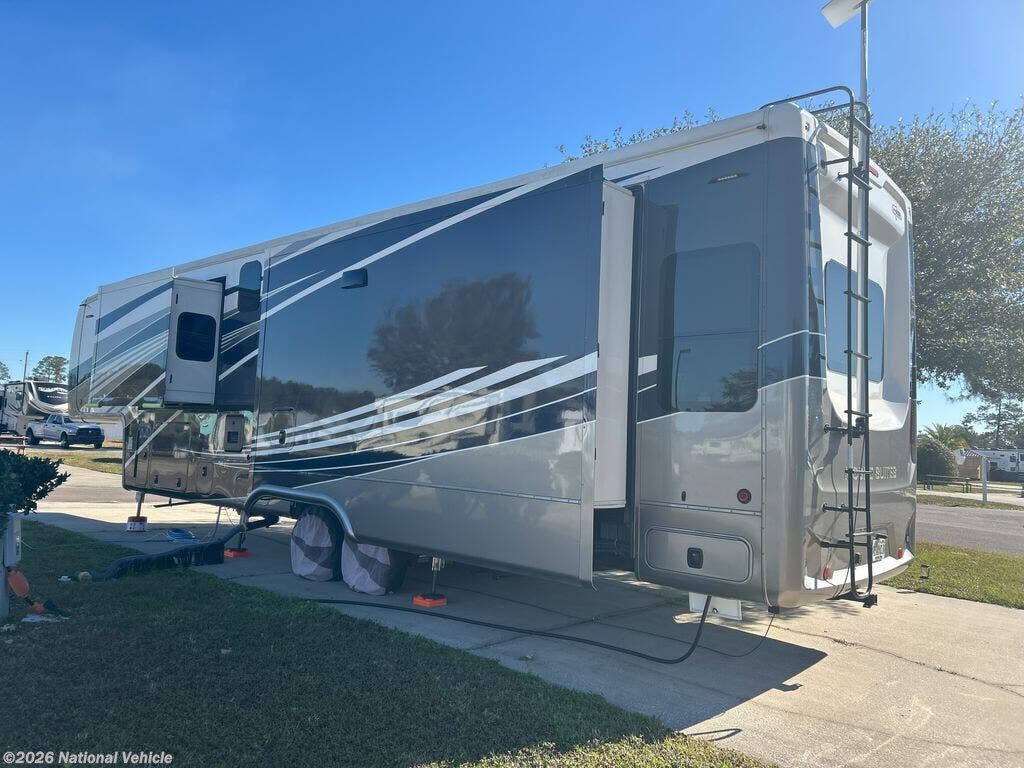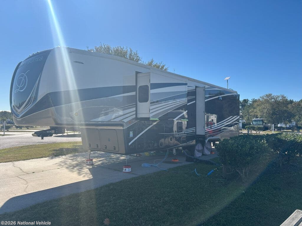 2022 DRV Mobile Suites 39DBRS3 41' 5" Fifth Wheel. 4 Slide Outs, 2 Awnings, Sleeps 4, 2 A/C Units, Auto Leveling System.